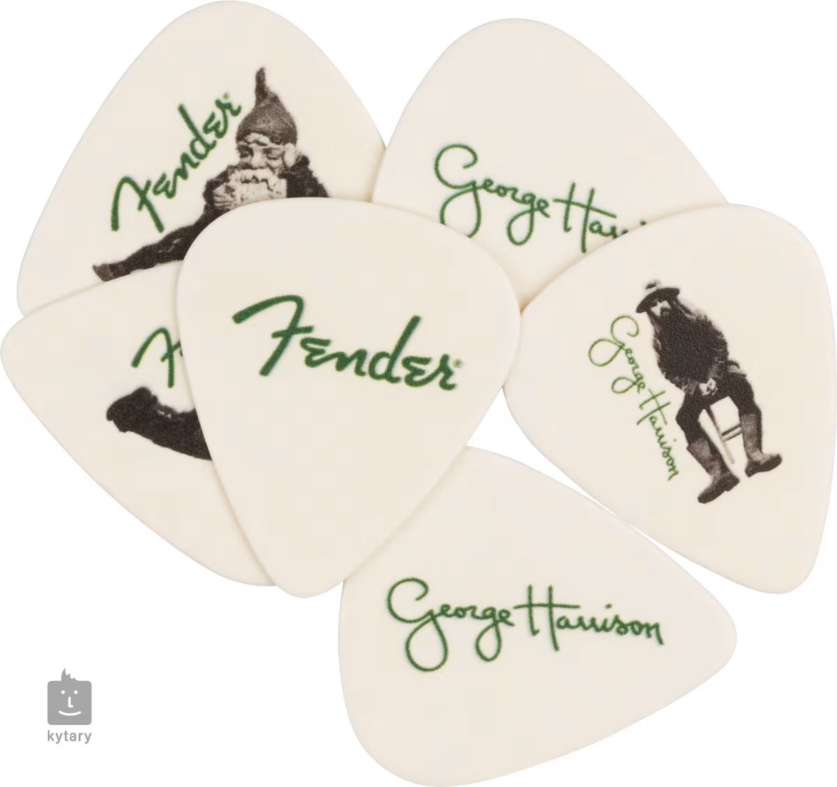 George Harrison jest bez wątpienia nierozerwalnie związany z rozwojem nowoczesnej muzyki pop, na którą wywarł ogromny wpływ jako gitarzysta, wokalista i kompozytor, zarówno podczas swojej solowej kariery, jak i jako członek legendarnej grupy Beatlesów. Ten kolekcjonerski zestaw zawiera sześć celuloidowych kostek w tradycyjnym kształcie 351, umieszczonych w stylowym blaszanym pudełku. Na każdym z nich znajduje się stylowa grafika upamiętniająca 50. rocznicę sukcesu legendarnego albumu All Things Must Pass.