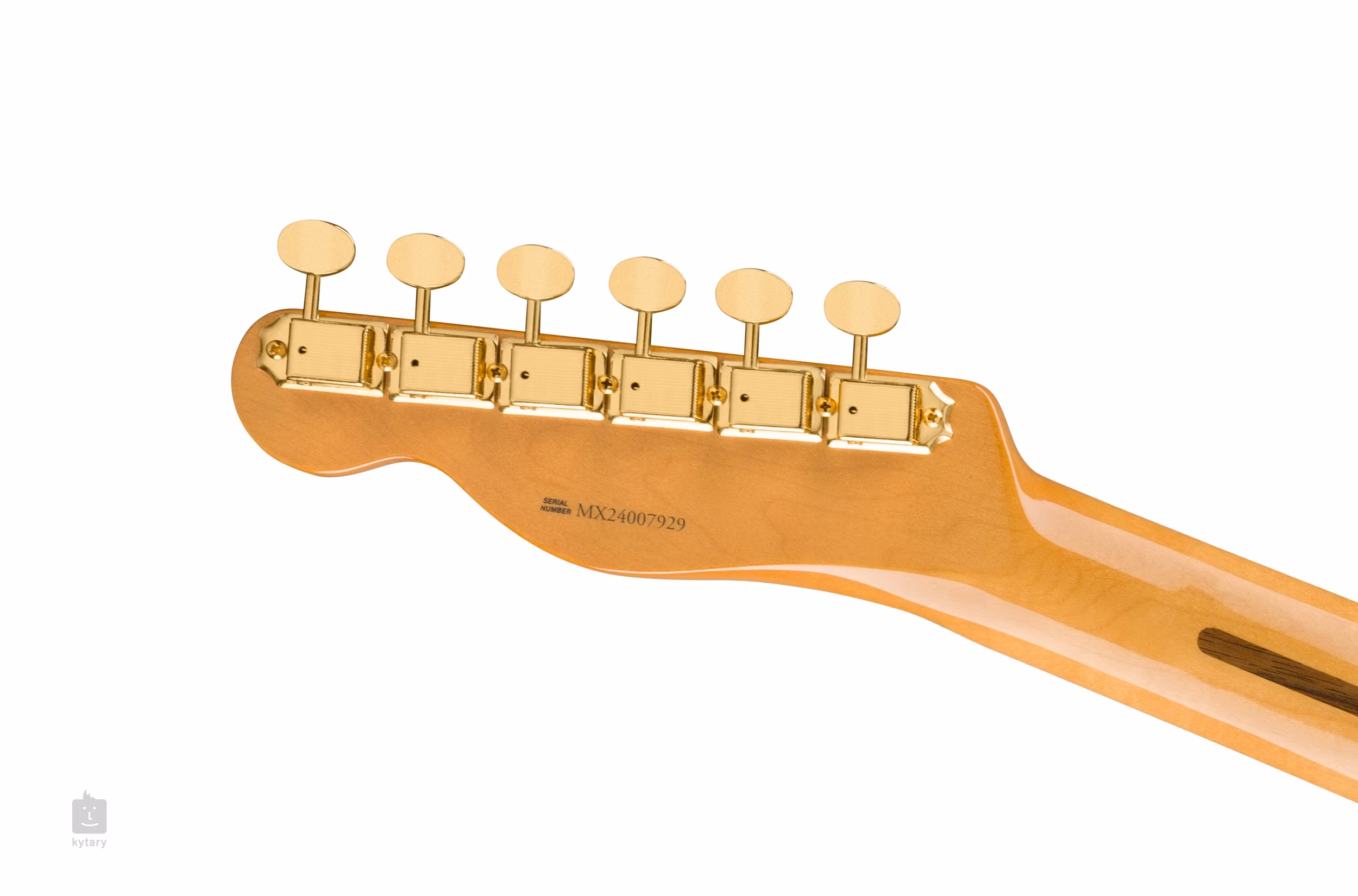 Dwa niestandardowe przetworniki jednocewkowe Buck Owens Alnico 3 i Alnico 2 nadają gitarze jasne brzmienie i niesamowity twang Tele. Dostosuj charakter brzmienia za pomocą pokręteł głośności, migawki tonów i trójpozycyjnego przełącznika przetworników. Struny są trzymane w maszynkach do strojenia w stylu vintage i przez mostek Tele z trzema mosiężnymi siodełkami przez korpus. Stylowe wykończenie podkreśla złoty osprzęt i jednowarstwowy pickguard (Mirrored Gold).