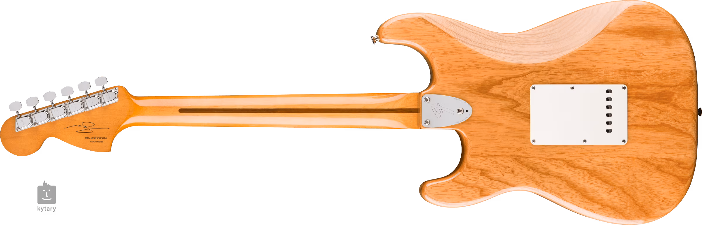 Korpus tego Stratocastera z lat 70. wykonany jest z jesionu. Słoje drewna są podkreślone przez błyszczące wykończenie lakierem poliestrowym. Klonowy gryf o profilu "C", 7,25-calowy promień podstrunnicy i dwadzieścia jeden progów w rozmiarze jumbo zapewniają przyjemną grę.