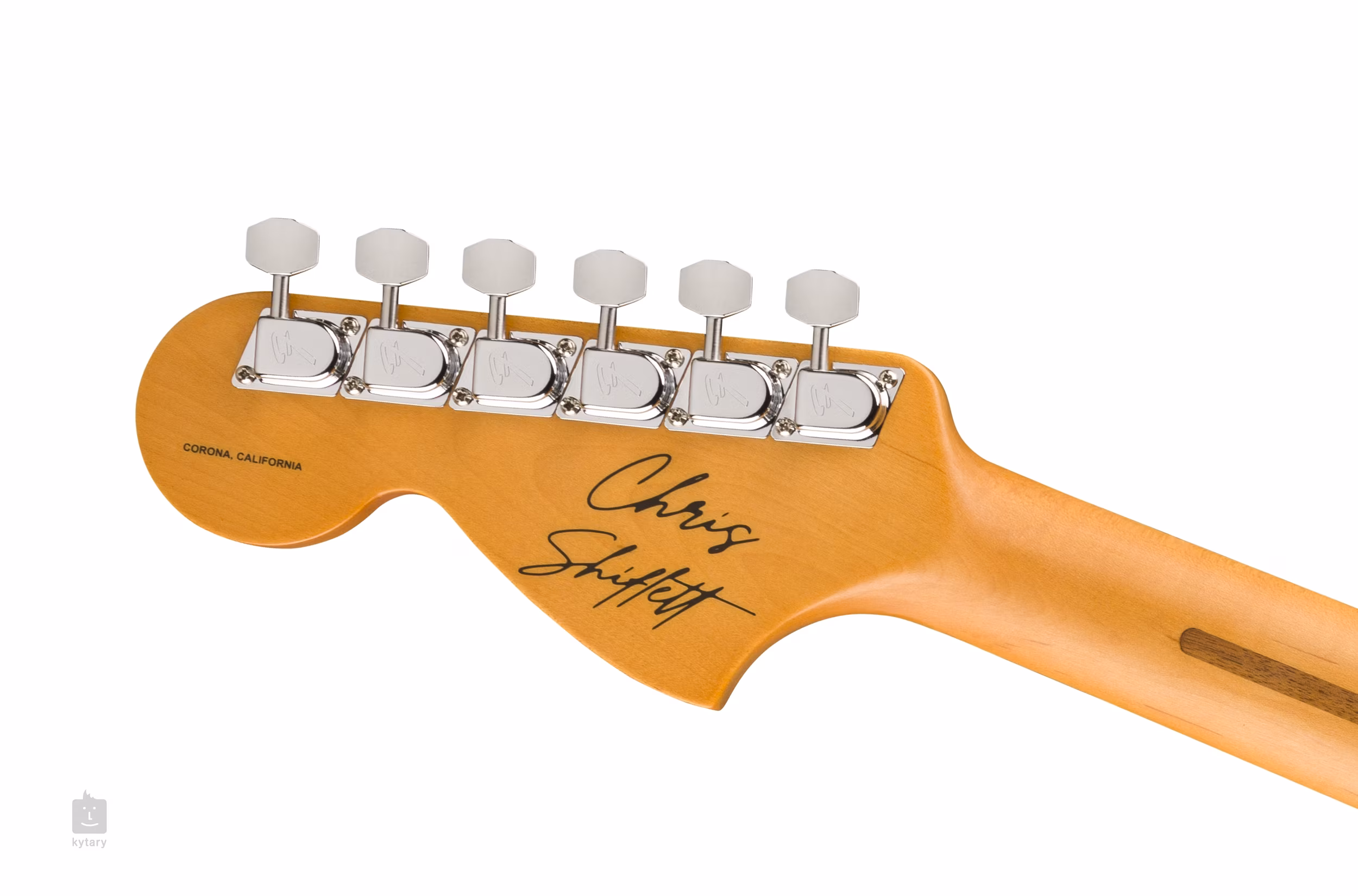 Dwa przetworniki Custom Chris Shiflett "Cleaver" Noiseless CS-90 z wyższą mocą wyjściową, mocnymi średnimi i śpiewnymi wysokimi tonami nadają gitarze szorstkości i brudu brudnego rocka, a także pięknie śpiewnych tonów - plus brak niepożądanych szumów. Dostosuj charakter brzmienia za pomocą potencjometrów głośności, migawki tonów i trójpozycyjnego przełącznika przetworników. Struny są zamontowane w mechanice Pure Vintage Fender i przechodzą przez korpus za pomocą stalowego mostka siodełkowego. Stylowe wykończenie podkreśla trzywarstwowy pickguard w kolorze Mint Green.