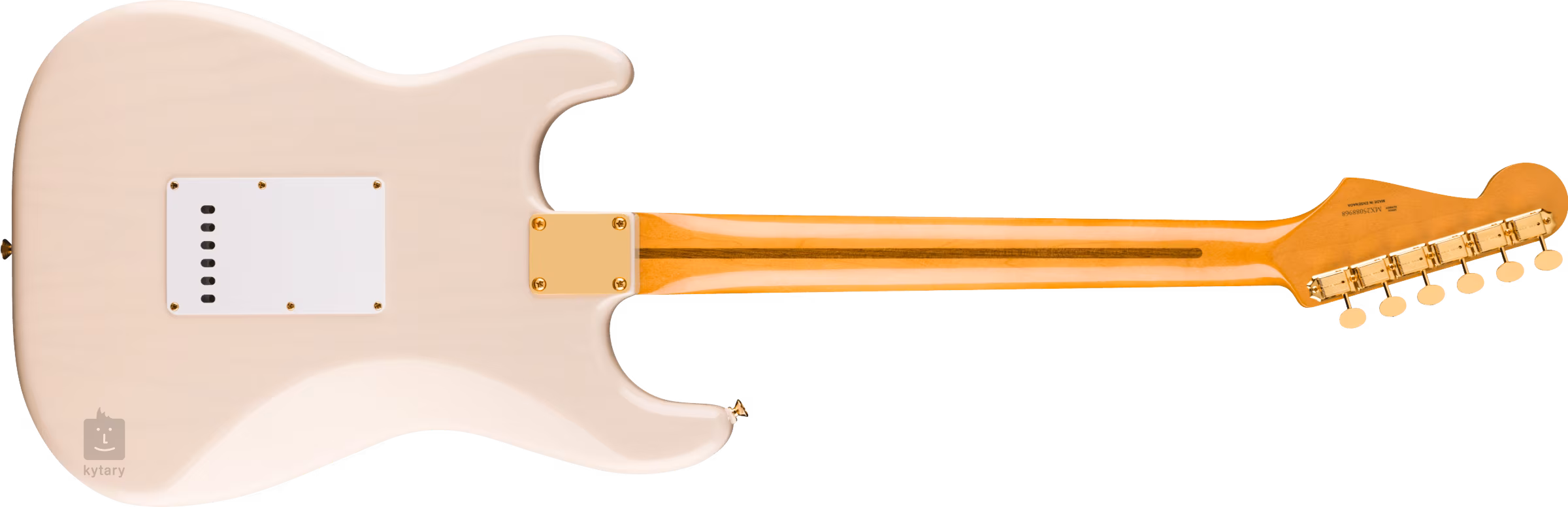 Trio przetworników Vintage-Style 1958 single-coil Strat zapewnia gitarze ciepłe, zrównoważone brzmienie przetworników Strat z końca lat 50. Kontury brzmienia można regulować za pomocą pokręteł głośności, tonu i pięciopozycyjnego przełącznika przetworników. Struny są zamocowane przez zerowy próg z kości w firmowych stroikach w stylu vintage i zsynchronizowanym tremolo z sześcioma stalowymi siodełkami. Stylowe wykończenie podkreśla biały, jednowarstwowy pickguard i złoty osprzęt.