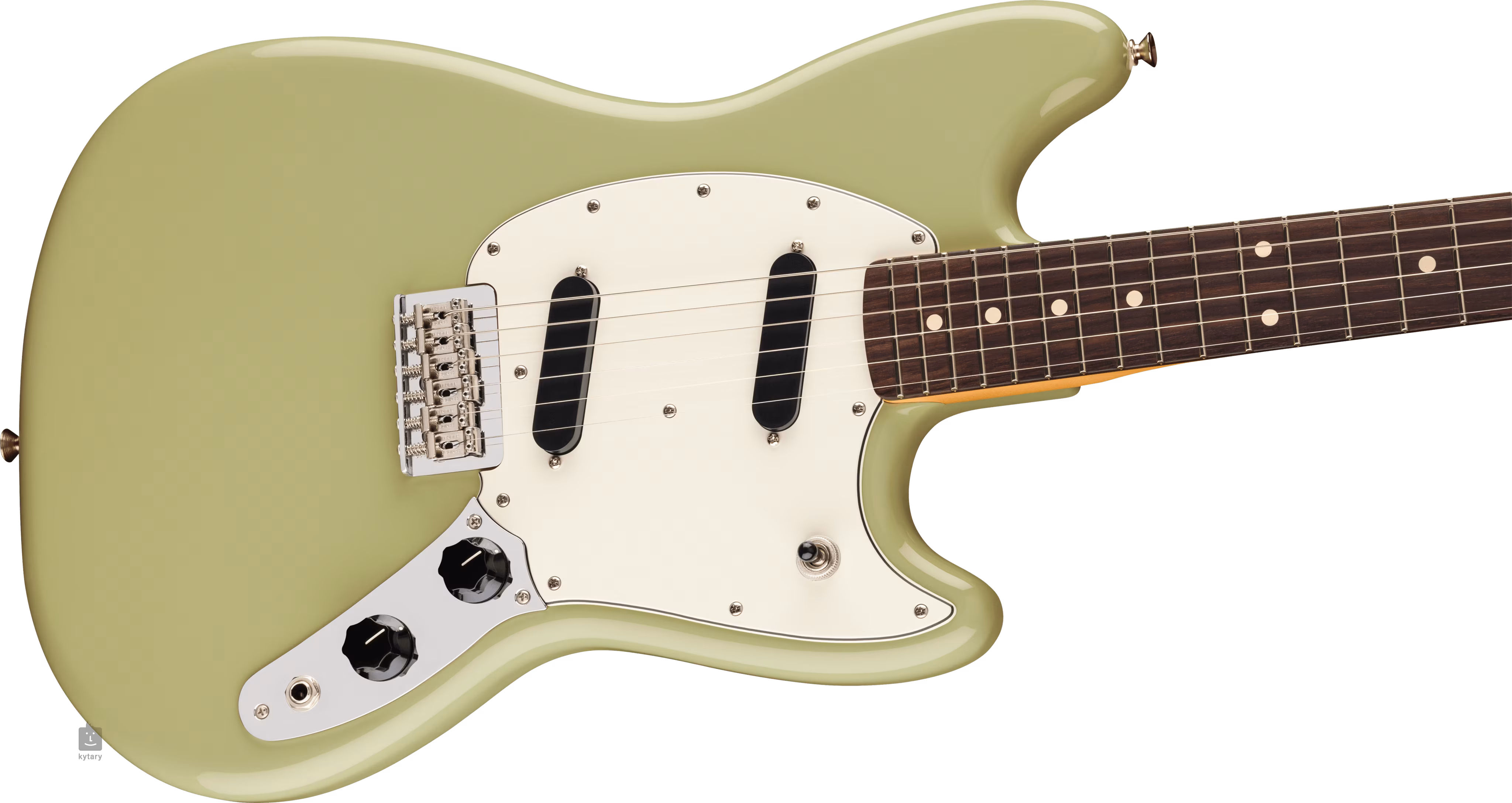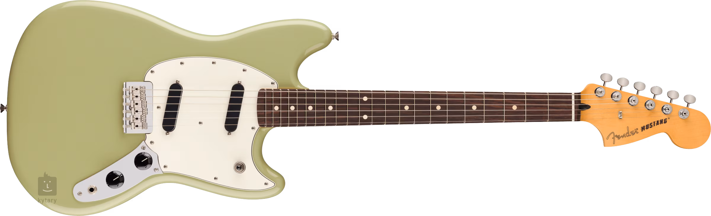 Fender Mustang, z charakterystycznym przesuniętym kształtem korpusu, został wprowadzony na początku lat 60. jako podstawowy model gitary elektrycznej i być może dlatego kilka dekad później zakochała się w nim cała scena alternatywna, na czele z Kurtem Cobainem i Johnem Frusciante. Olchowy korpus modelu Player II Mustang RW BCG pokryty jest błyszczącym lakierem poliestrowym. Klonowy gryf z profilem "Modern C" i satynowym wykończeniem oraz palisandrowa podstrunnica z zaokrąglonymi krawędziami zapewniają doskonałą grywalność. Dzięki krótszemu rozstawowi strun (610 mm), Mustang będzie również odpowiedni dla muzyków, którzy mają trudności z nadążaniem za gitarami o standardowym rozstawie strun (Strat, Tele, Jazzmaster).