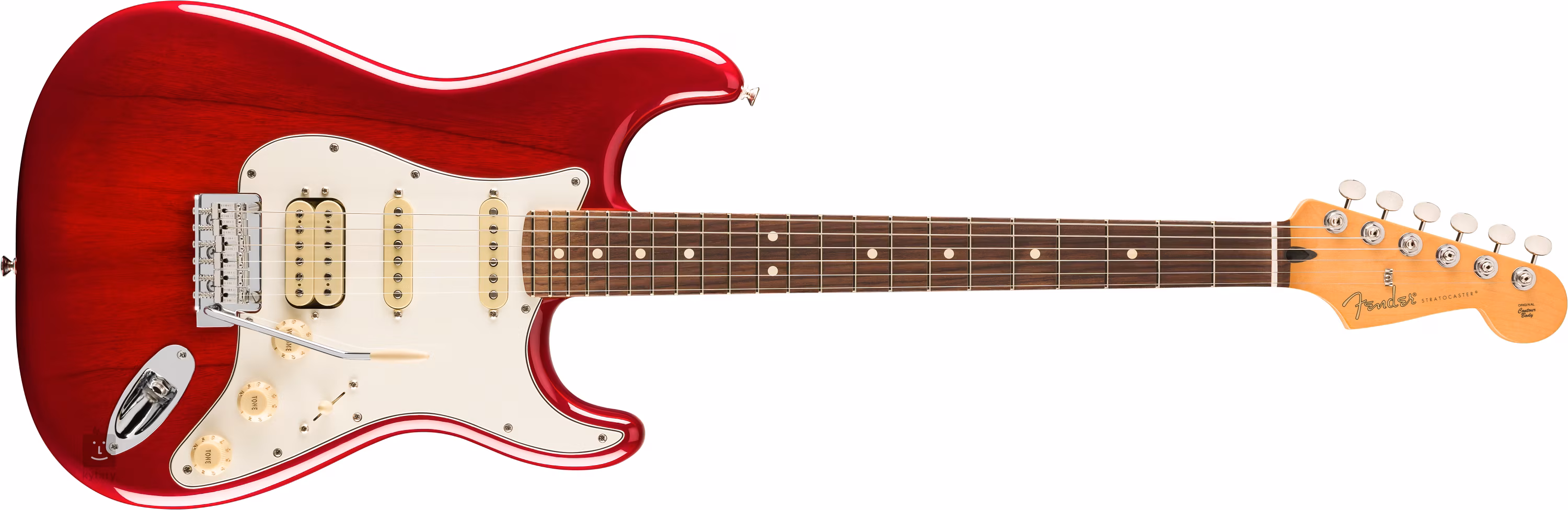 Przetwornik humbucker z serii Player z magnesami Alnico 2 i dwa przetworniki single-coil z magnesami Alnico 5 nadają gitarze bardziej nowoczesny charakter i brzmienie Fendera, które docenisz w szerokim zakresie stylów muzycznych. Charakter brzmienia można regulować za pomocą pokręteł głośności i tonów oraz pięciopozycyjnego przełącznika przetworników. Struny są zamontowane w mechanice ClassicGear z przełożeniem 18:1 i zsynchronizowanym "2-punktowym" tremolo ze stalowymi siodełkami. Stylowy wygląd gitary podkreśla jasny 3-warstwowy pickguard i błyszczące wykończenie Transparent Cherry Burst.