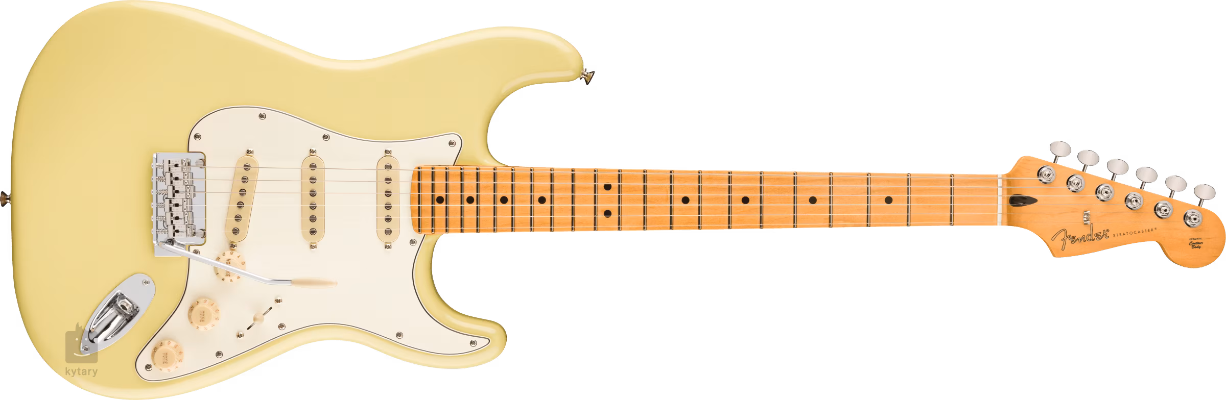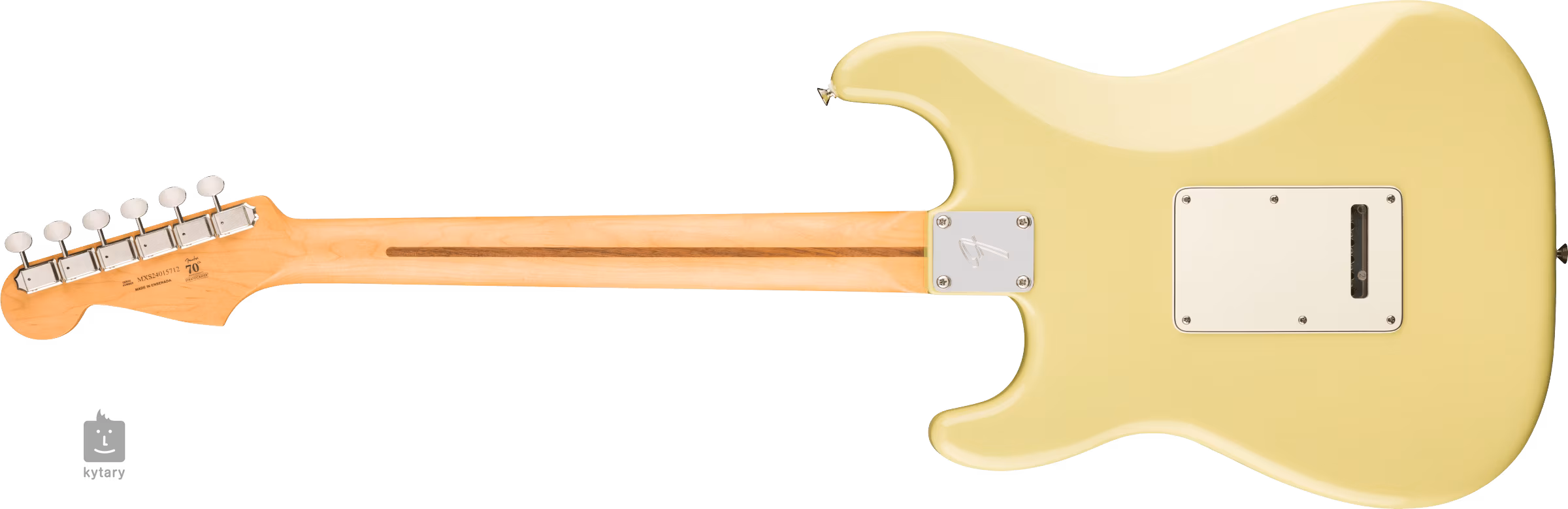 Trzy przetworniki jednocewkowe z serii Player z magnesami Alnico 5 nadają gitarze bardziej nowoczesny charakter i brzmienie Fendera, które docenisz w szerokiej gamie stylów muzycznych. Charakter brzmienia można regulować za pomocą pokręteł głośności i tonów oraz pięciopozycyjnego przełącznika przetworników. Struny są zamontowane w mechanice ClassicGear z przełożeniem 18:1 i zsynchronizowanym "2-punktowym" tremolo ze stalowymi siodełkami. Stylowy wygląd gitary podkreśla jasny 3-warstwowy pickguard i wykończenie Hialeah Yellow.