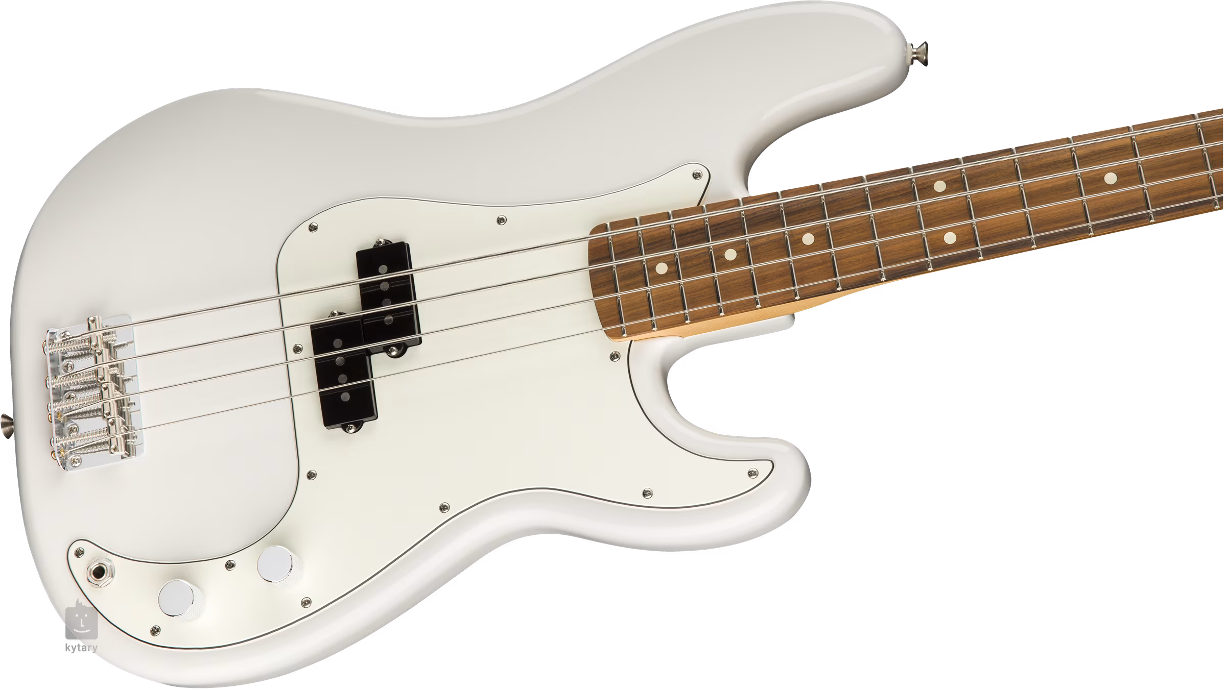 Przetwornik Alnico z dzieloną cewką również dobrze współpracuje z materiałami korpusu i szyjki, zapewniając mocne i solidne brzmienie w tradycji Precision Bass, które nie zgubi się w żadnym zespole. Proste pokrętła z potencjometrami głośności i tonów pozwalają dostroić dźwięk do własnych upodobań. Osprzęt jest również typowej jakości Fendera, z otwartym napędem, podstrunnicą z syntetycznej kości i czterostopniową główką zapewniającą stabilne strojenie.