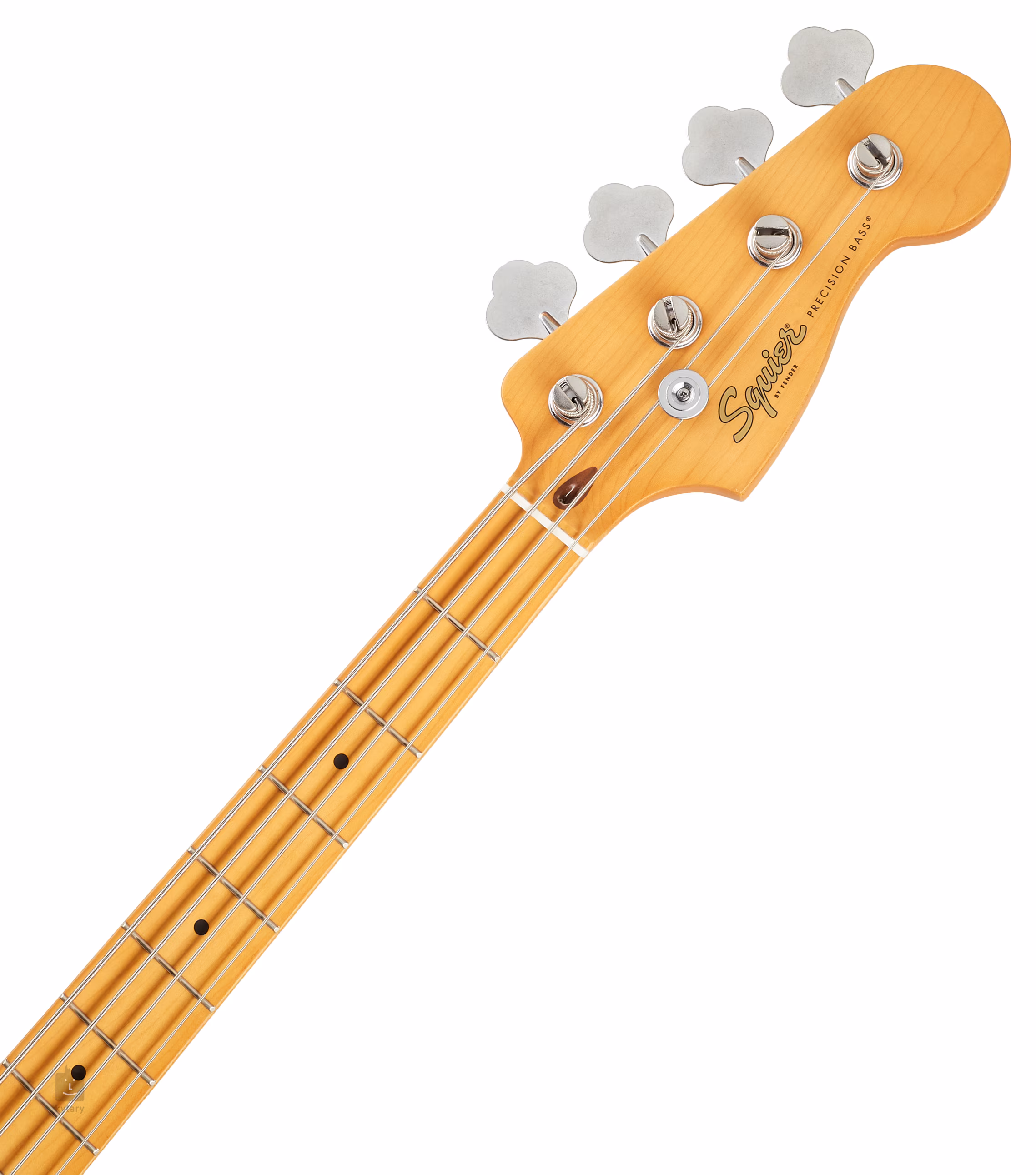 Model 40th Anniversary Precision Bass Vintage Edition oferuje szereg klasycznych cech dla entuzjastów Squiera w stylu retro - czy to subtelne akcenty faux-patina w postaci chromowanego osprzętu i anodyzowanego pickguardu, rocznicowy grawer na szyjce, czy też całkowicie satynowe wykończenie korpusu i szyjki.