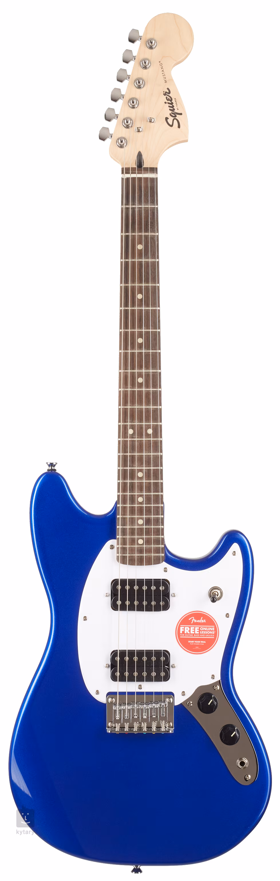 Designed for players seeking an affordable, stylish and versatile instrument, the Bullet® Mustang® HH is a tonal powerhouse that punches above its weight. Highlights include a thin and lightweight body, an easy-to-play “C”-shaped neck profile and a short 24” scale length that is great for small hands. This model also boasts a pair of humbucking pickups with three-way switching for sonic variety, and a string-through-body hardtail bridge for reliable tuning stability.