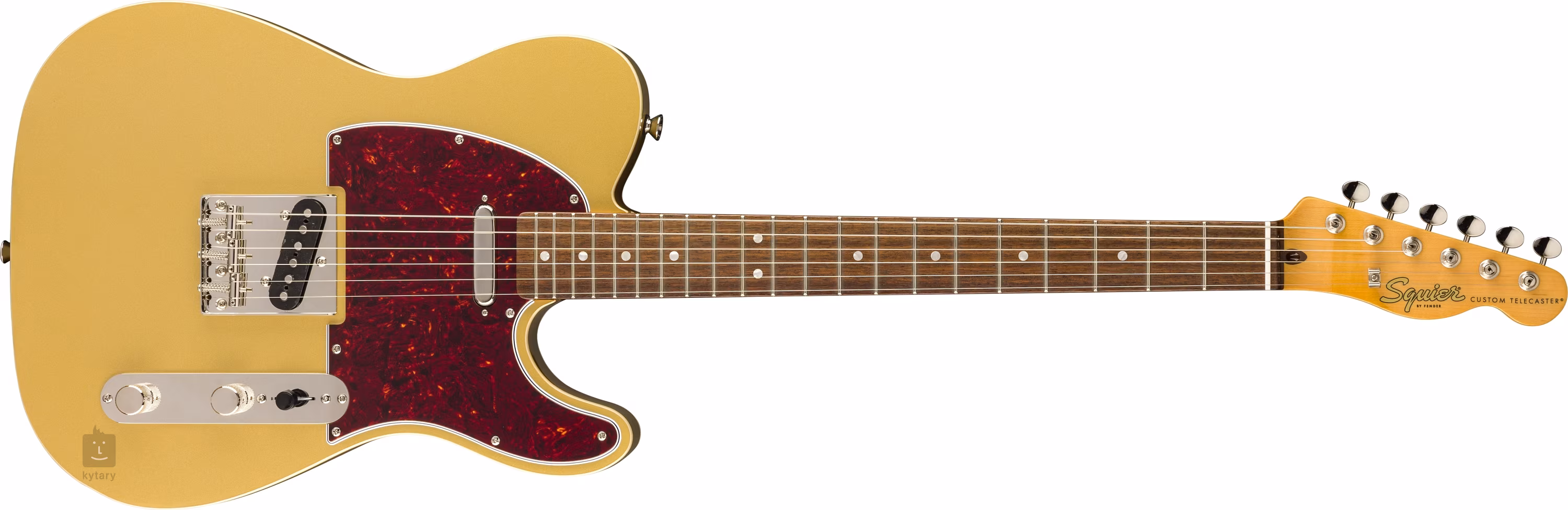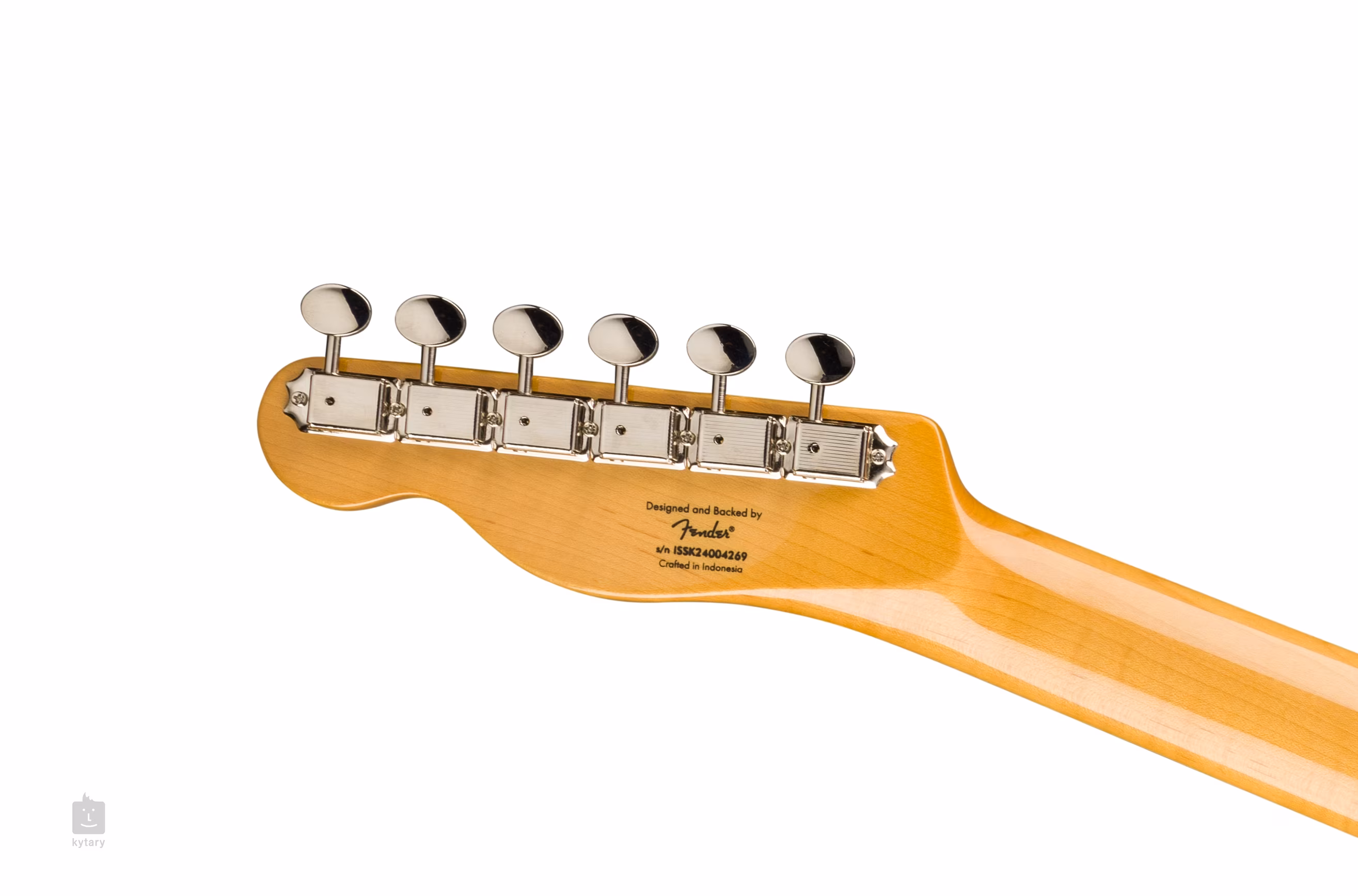 Dwa opatentowane przetworniki single-coil z magnesami Alnico nadają gitarze brzmienie o autentycznym charakterze Fendera. Potencjometry głośności, regulatory tonów i trójpozycyjny przełącznik przetworników służą do regulacji ustawień. Struny mocowane są w firmowych maszynkach do strojenia w stylu vintage, a przez korpus przechodzi solidny mostek z trzema chromowanymi siodełkami. Stylowe wykończenie podkreśla obowiązkowy dla modeli Custom Telecaster dwustronny binding korpusu, niklowane okucia, czterowarstwowy pickguard z imitacji skorupy żółwia oraz logo Squier by Fender na główce.