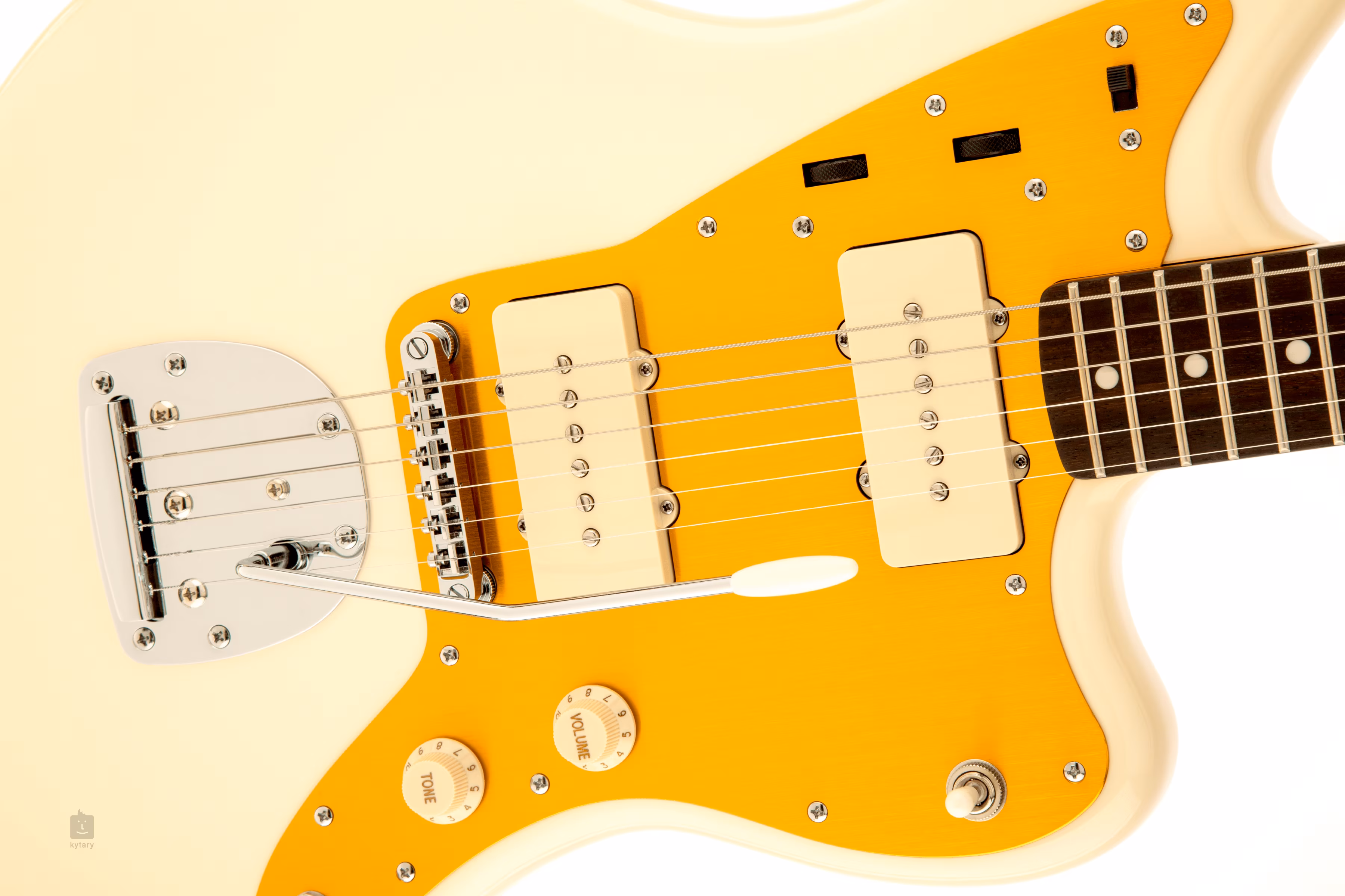 Gitara elektryczna SQ J MASCIS JAZZMASTER VWT powstała we współpracy z wokalistą i gitarzystą słynnego amerykańskiego zespołu rockowego Dinosaur Jr. J Mascisem, który decydował o wykończeniu, osprzęcie i przetwornikach. Jest to Jazzmaster z bardziej przystępnej cenowo linii Fender Squier.