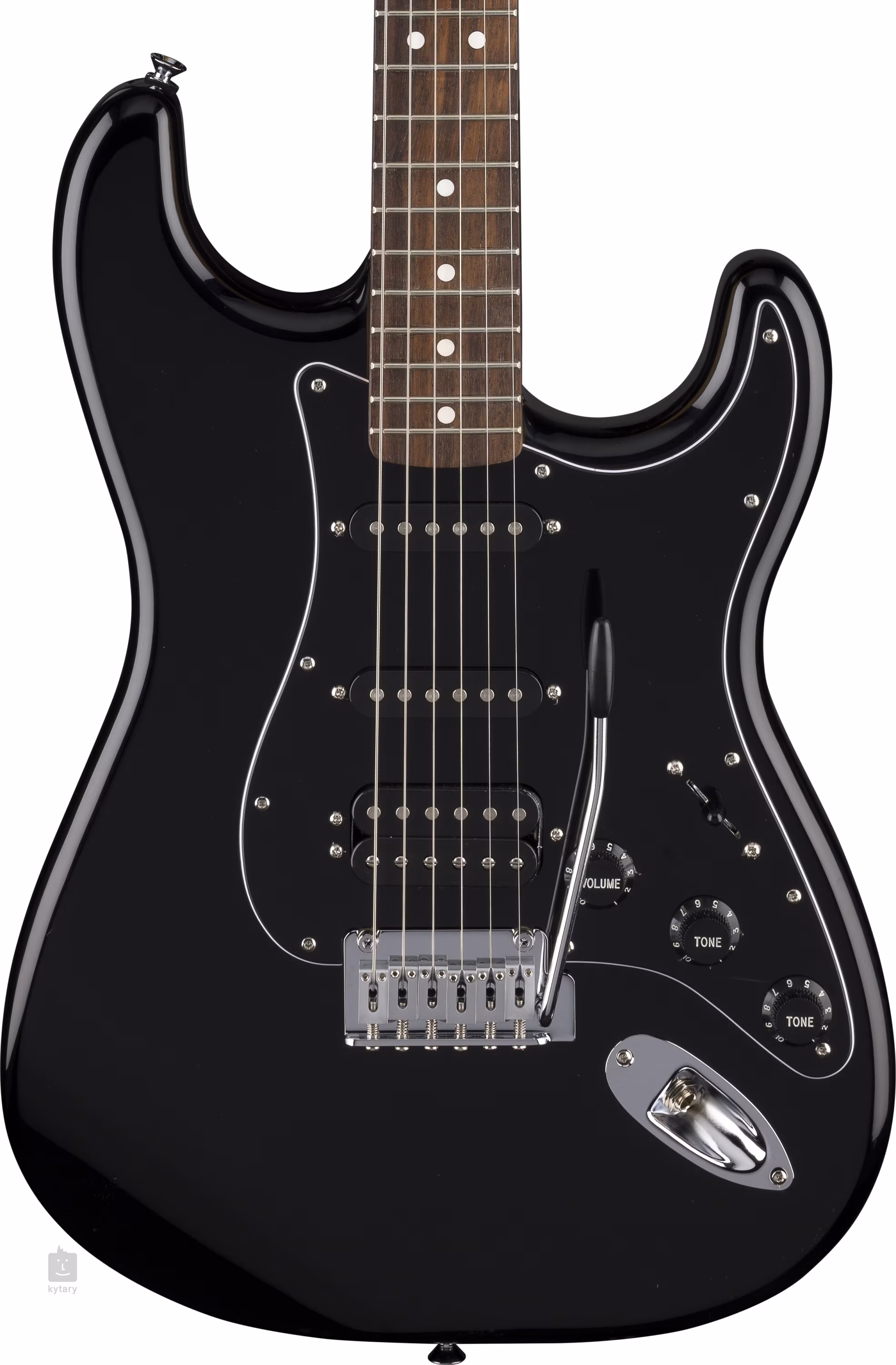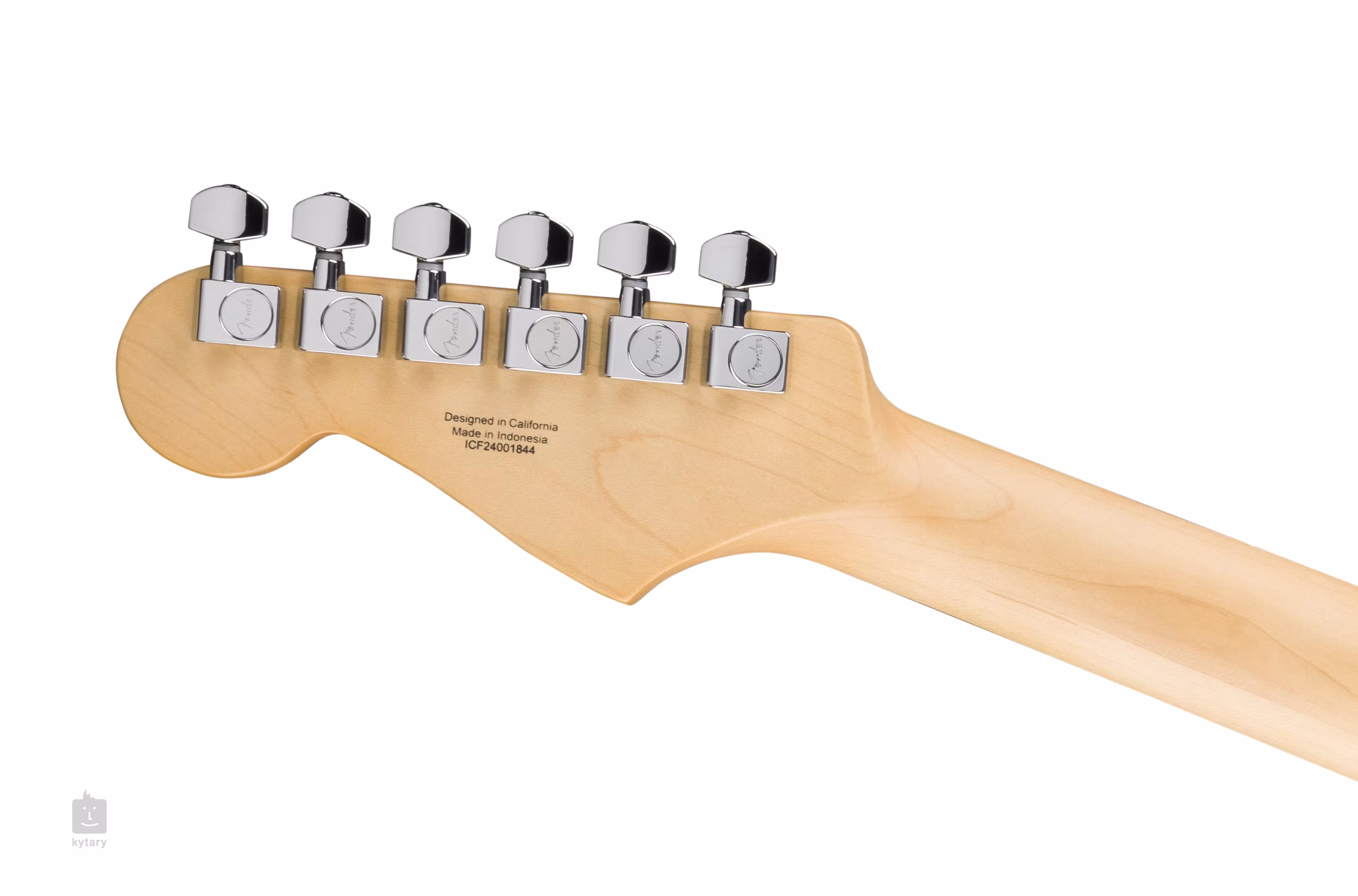 Przetwornik typu bobbin humbucker i dwa przetworniki typu single-coil z magnesami ceramicznymi i nieco wyższą mocą wyjściową zapewniają gitarze zarówno soczyste rockowe brzmienie, jak i piękne czyste brzmienie. Dostosuj jego kontury za pomocą potencjometrów głośności, dwóch regulatorów tonów i pięciopozycyjnego przełącznika przetworników. Struny są zamontowane w firmowych maszynkach do strojenia (Fender Standard Cast) i 2-punktowym tremolo z chromowanymi stalowymi siodełkami (siodełka blokowe). Stylowe wykończenie podkreśla czarna trójwarstwowa osłona pickguard i logo Fender Stratocaster na główce.