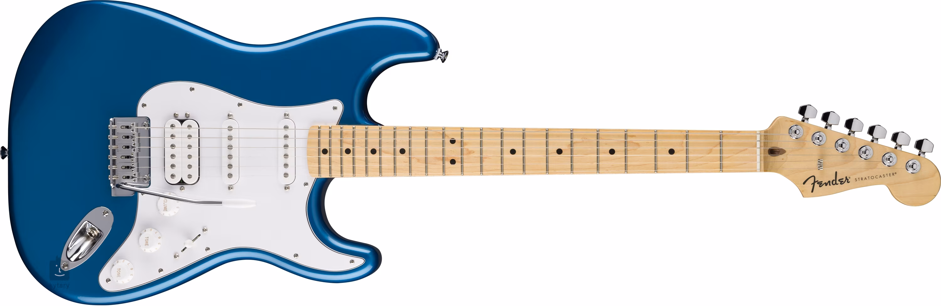 Przetwornik typu bobbin humbucker i dwa przetworniki typu single-coil z magnesami ceramicznymi i nieco wyższą mocą wyjściową nadają gitarze zarówno soczyste rockowe brzmienie, jak i piękny czysty dźwięk. Dostosuj jej kontury za pomocą potencjometrów głośności, dwóch regulatorów tonów i pięciopozycyjnego przełącznika przetworników. Struny są zamontowane w firmowych maszynkach do strojenia (Fender Standard Cast) i 2-punktowym tremolo z chromowanymi stalowymi siodełkami (siodełka blokowe). Stylowe wykończenie podkreśla biały trójwarstwowy pickguard i logo Fender Stratocaster na główce.
