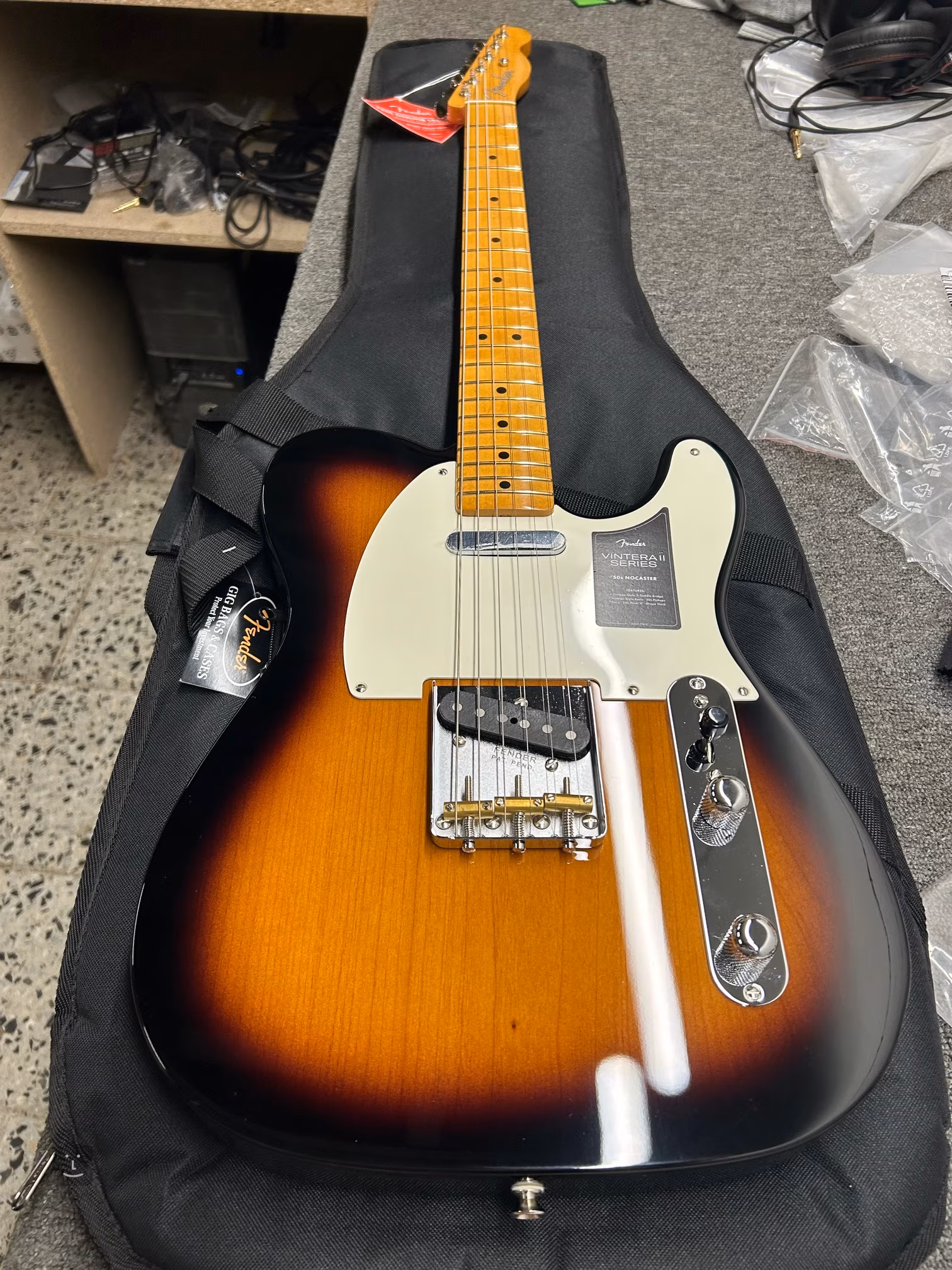 Ożyw ponadczasowe brzmienie lat 50. ubiegłego wieku dzięki gitarze elektrycznej Fender Vintera II 50s Nocaster Maple Fingerboard, 2-Color Sunburst i poczuj na własnej skórze wrażenia, które zapewniają wyłącznie gitary z logo Fender. Korpus gitary pokryty jest błyszczącym lakierem poliestrowym. Szyjka i podstrunnica instrumentu są wykonane z klonu. Bardzo gruba szyjka o profilu „Thick U” zapewnia autentyczne wrażenia z początku lat 50. – również promień podstrunnicy 7,25 cala i progi Vintage Tall jasno pokazują, że nie ma tu żadnych modyfikacji i ustępstw dla współczesnych gitarzystów. Dwa przetworniki w stylu vintage z lat 50. zapewniają gitarze krystalicznie czysty ton i metaliczny „twang” modeli Nocaster/Telecaster, dzięki którym instrumenty te są poszukiwane przez gitarzystów od dziesięcioleci. Charakter brzmienia można regulować za pomocą standardowych pokręteł głośności, tonu i trzypozycyjnego przełącznika przetworników. Struny są zamocowane przez zerowy próg z syntetycznej kości w firmowych stroikach w stylu vintage i przez klasyczny mostek w stylu Tele z trzema mosiężnymi siodełkami przez korpus gitary. Stylowe wykończenie podkreśla jednowarstwowa osłona i logo Fender na główce gitary. Instrument jest dostarczany w wysokiej jakości opakowaniu (deluxe gig bag). Seria Vintera oferuje gitary elektryczne i basowe produkowane w meksykańskiej Ensenadzie, które przeniosą Cię z powrotem do lat pięćdziesiątych, sześćdziesiątych lub siedemdziesiątych. Brzmienie, wygląd, wyposażenie – wszystko to ma na celu stworzenie wiernych kopii instrumentów z tamtej epoki. Jeśli szukasz niedrogiej gitary lub basu marki Fender, nie ma się nad czym zastanawiać.