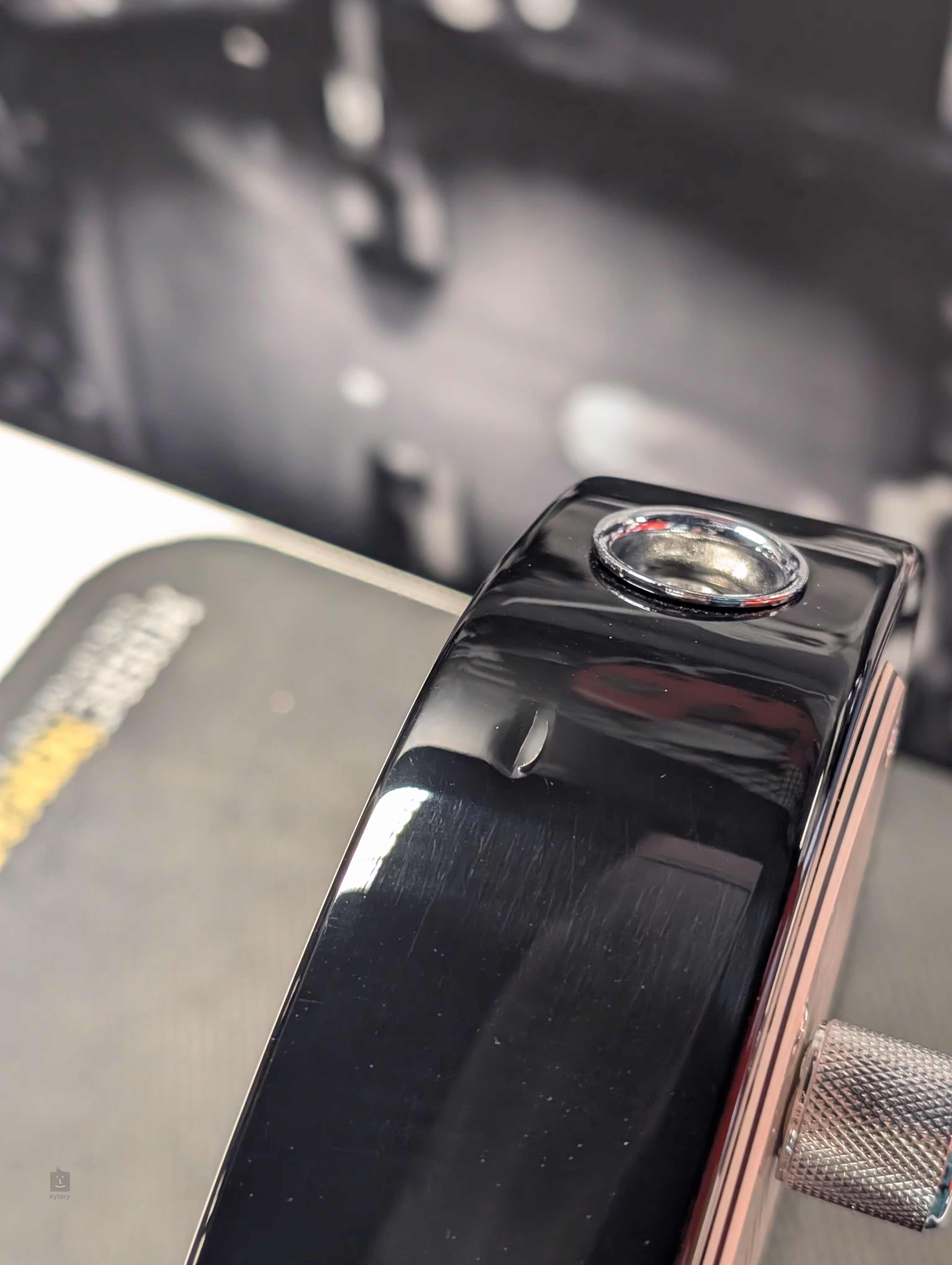 Gitara jest lekko uszkodzona przy złączu jack (patrz zdjęcie).
