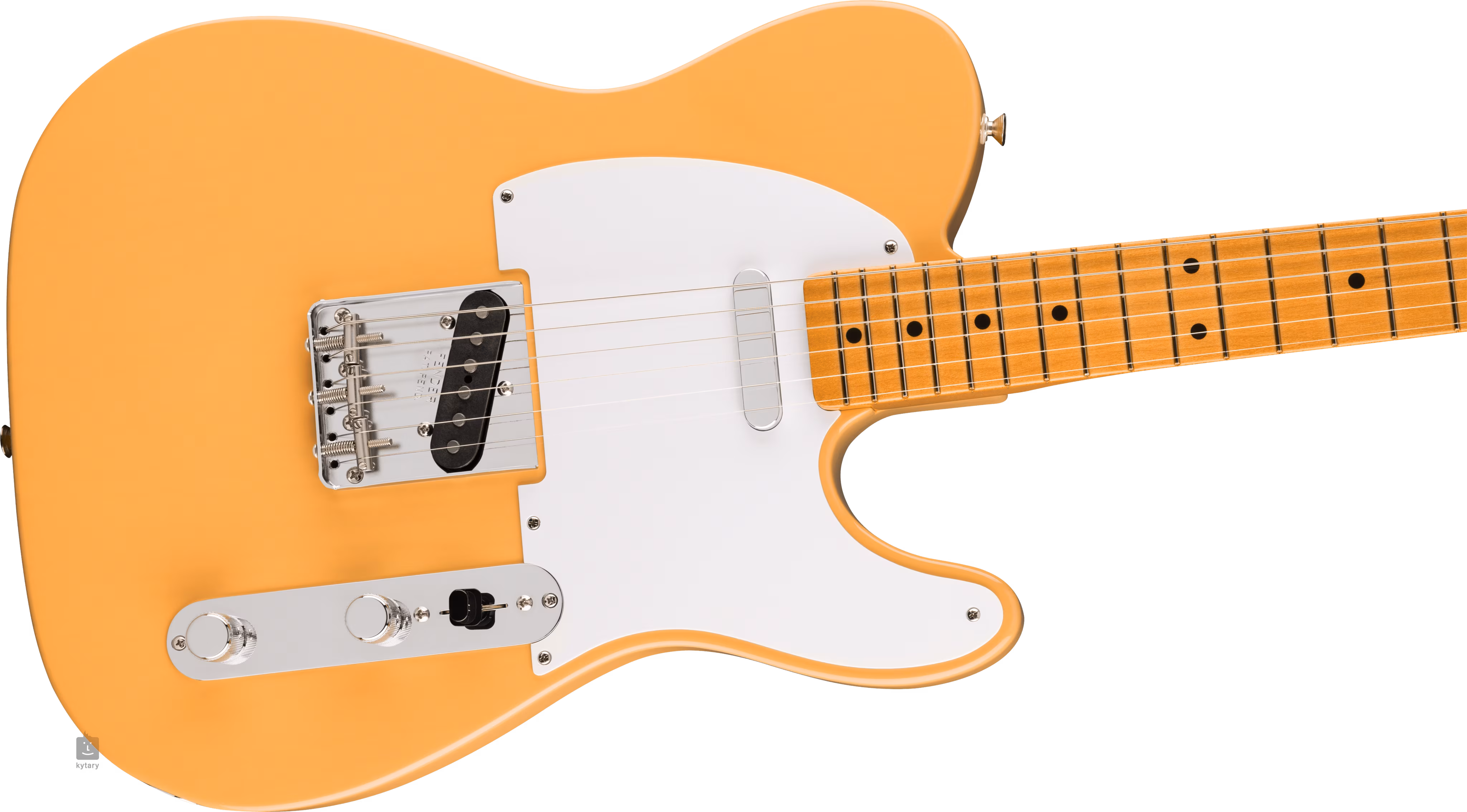 Dwa przetworniki Vintage-Style Late '50s single-coil Tele zapewniają gitarze autentyczne brzmienie vintage/twang i charakterystyczne dla przetworników Tele z końca lat 50. Kontury brzmienia można regulować za pomocą standardowych pokręteł. Stabilne strojenie gwarantuje mocowanie strun w firmowych mechanizmach w stylu vintage oraz przez most Tele z trzema stalowymi siodełkami przechodzącymi przez korpus. Stylowe wykończenie podkreśla jednowarstwowa biała płytka ochronna.