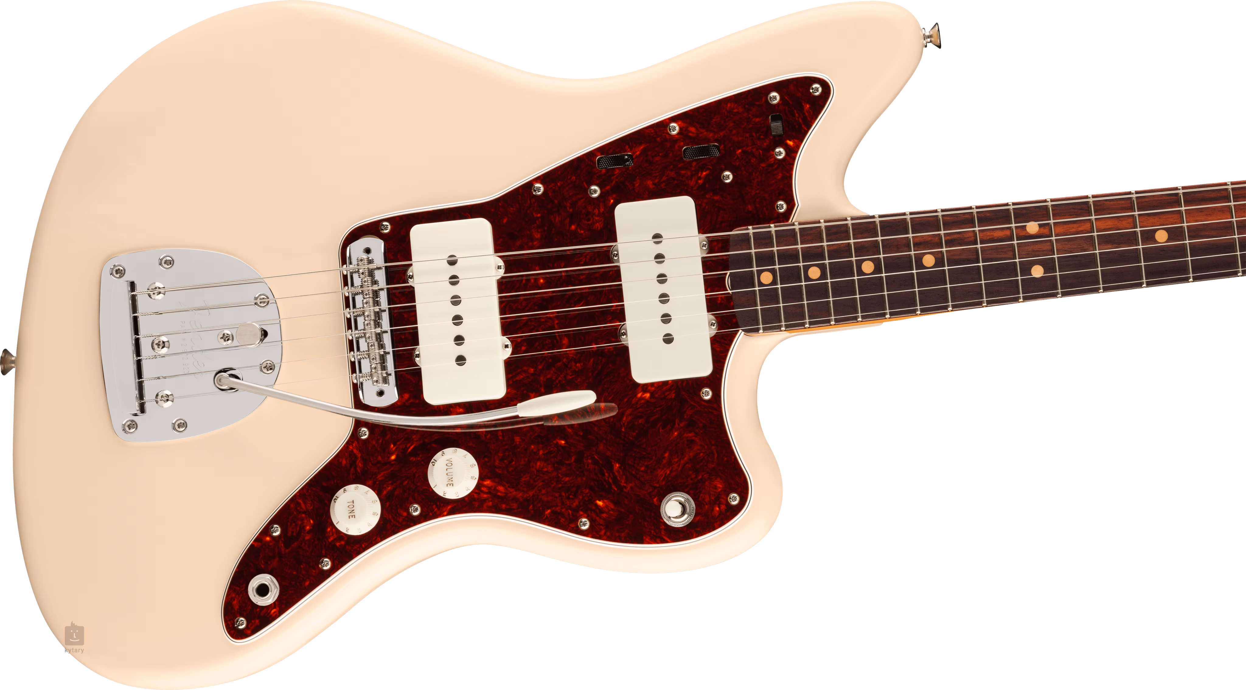 Ożyw ponadczasowe brzmienie lat sześćdziesiątych ubiegłego wieku dzięki gitarze elektrycznej Fender Vintera III Mid '60s Jazzmaster RW OWT i poczuj na własnej skórze wrażenia, które zapewniają wyłącznie gitary z logo Fender. Słowo „Jazzmaster” w nazwie sugeruje pierwotny zamysł, ale ten instrument muzyczny o charakterystycznym kształcie korpusu nie miał zbyt wiele wspólnego z jazzem – zyskał popularność wśród muzyków sceny alternatywnej (od surf rocka po indie rock).