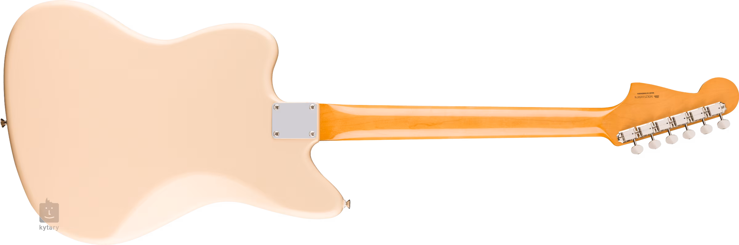 Struny są zamocowane przez zerowy próg z kości w firmowych mechanizmach w stylu vintage i przez mostek z sześcioma regulowanymi siodełkami w vintage floating tremolo. Stylowe wykończenie podkreśla czterowarstwowa płytka z imitacji szylkretu.
