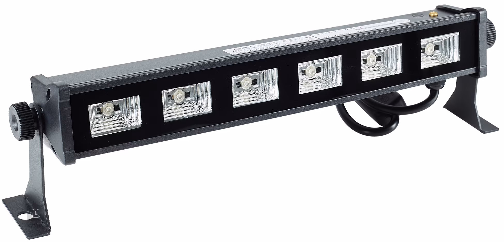 Profesjonalna lampa UV LEDBar UV6 firmy Flash jest idealna do rozjaśnienia każdej imprezy, wydarzenia specjalnego (takiego jak Halloween) lub innego wydarzenia. Podstawę stanowi sześć diod LED UV o mocy 3 W, które wytwarzają silne oświetlenie ultrafioletowe. W zestawie znajduje się metalowy wspornik do stałego montażu na konstrukcji wsporczej, który służy również jako stojak po umieszczeniu na ziemi. Korpus listwy wykonany jest z wytrzymałego tworzywa ABS.