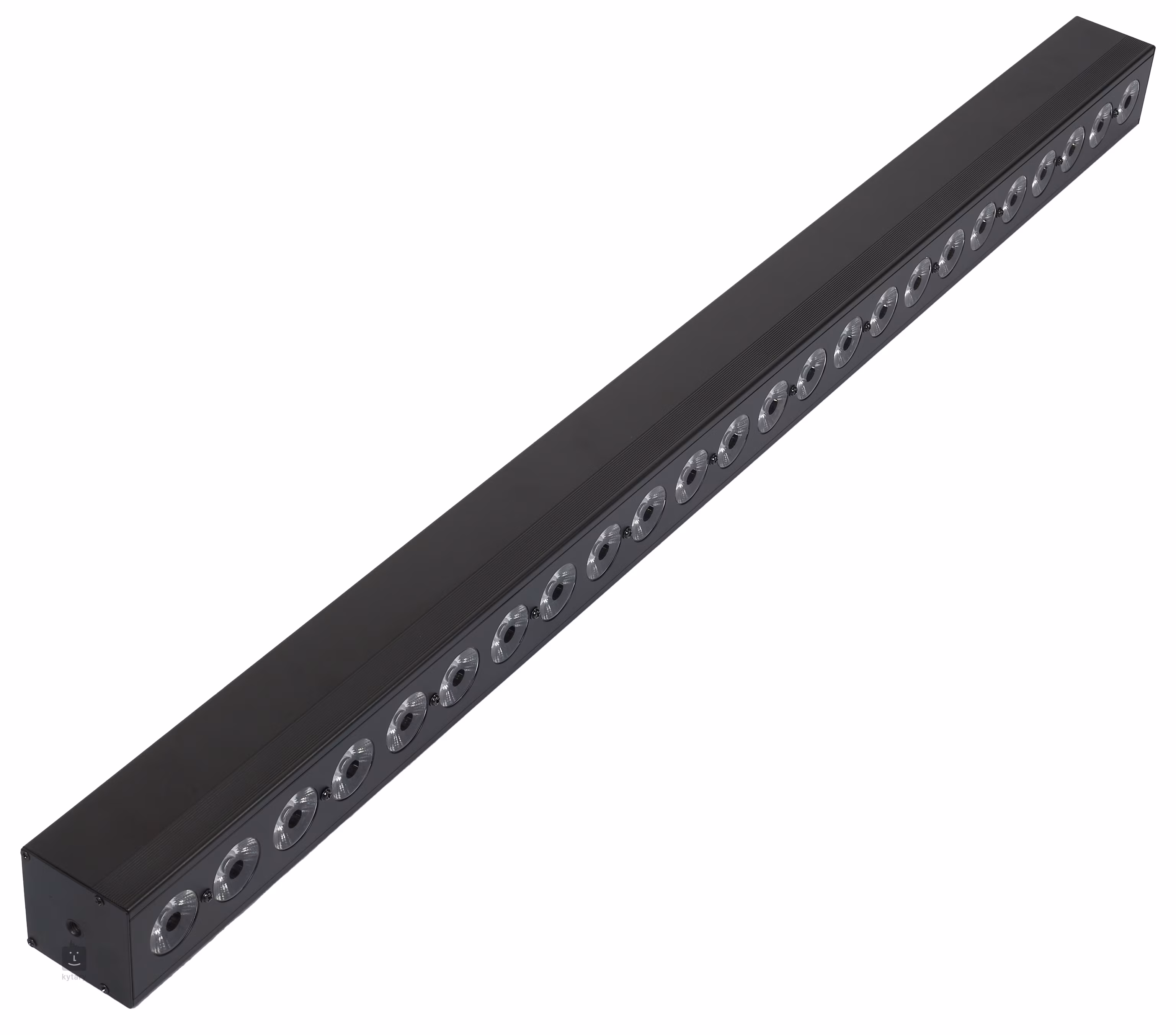 Sterowanie odbywa się za pośrednictwem standardowego protokołu DMX-512 (listwa ma 5, 8, 14, 26 lub 50 kanałów) lub zdalnie za pomocą pilota na podczerwień. Dostępne są również programy sterowane dźwiękiem i automatyczne lub tryb Master/Slave. Ustawienia ręczne można wprowadzać za pomocą przejrzystego panelu sterowania z wyświetlaczem i przyciskami. Listwa zapewnia tylko podstawowy stopień ochrony IP20, więc nie nadaje się do użytku na zewnątrz. W zestawie znajduje się przewód zasilający i elementy montażowe.