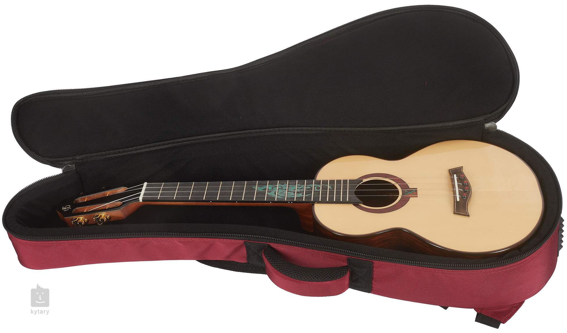 A10SC Cocobolo Dragon to luksusowe ukulele tenorowe o całkowicie masywnej konstrukcji z serii Anniversary Series marki Flight. Seria A10 obejmuje wyłącznie ręcznie wykonane instrumenty pochodzące z warsztatów mistrzów lutnictwa. Przednia płyta ukulele jest wykonana z północnoamerykańskiego świerku (świerk Engelmanna), tylna płyta i boki są wykonane z tropikalnego drewna cocobolo o absolutnie ekskluzywnym usłojeniu. Do mahoniowego gryfu przyklejony jest hebanowy podstrunnica z dziewiętnastoma progami. Podstrunnicę zdobi wyraźna turkusowa intarsja przedstawiająca smoka – symbol słoweńskiej Lublany. Struny są zamocowane przez zerowy i kompensowany mostek z kości w stroikach na główce (slotted headstock) o oryginalnym designie i hebanowym mostku. Luksusowe wykończenie podkreśla rozeta z drewna sekwoi z rzymską cyfrą „X” upamiętniającą dziesiątą rocznicę oraz czarna obwódka z czerwoną wkładką. Ukulele jest dostarczane w luksusowym futerale (deluxe gig bag). Słoweńska marka Flight to kolejna interesująca pozycja wśród producentów ukulele. Oferuje szeroką gamę tych popularnych, kompaktowych instrumentów w klasycznych i mniej tradycyjnych kształtach oraz standardowych rozmiarach. Początkujących graczy i wędrowców z duszą muzyka ucieszą wysokiej jakości, niedrogie modele ukulele wykonane z klasycznego i egzotycznego drewna w naturalnych i kolorowych wykończeniach lub modele podróżne z serii Travel Series z korpusem z wytrzymałego tworzywa sztucznego. Nie zostaną pominięci nawet bardziej wymagający muzycy i profesjonalni gracze, którzy mogą wybierać spośród najwyższej jakości modeli elektroakustycznych ukulele z półmasywnym lub całkowicie masywnym korpusem.