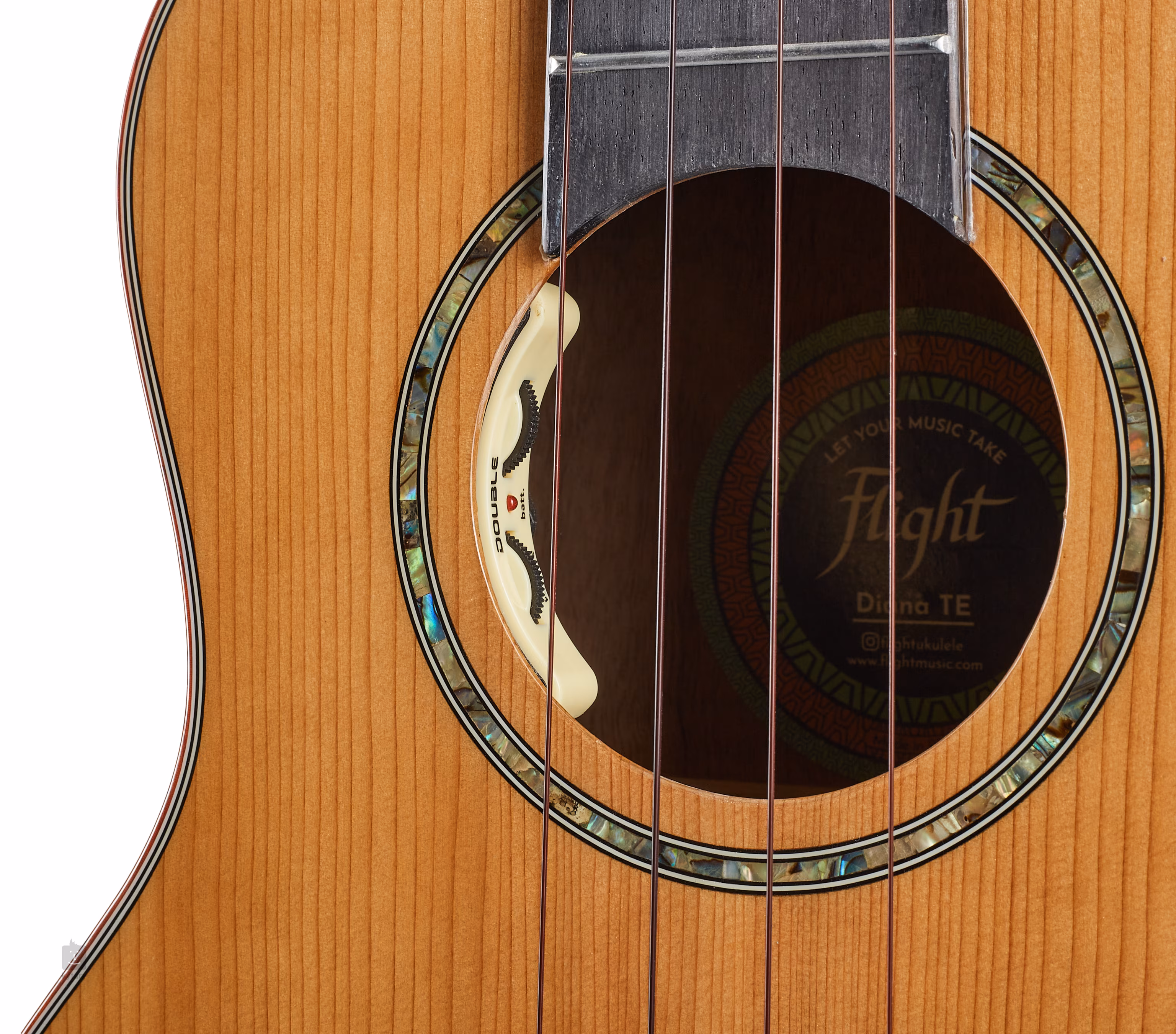 Aktywna elektronika Double B1U z kontrolerami głośności i barwy dźwięku dyskretnie umieszczonymi w otworze dźwiękowym instrumentu oferuje możliwość wzmocnienia dźwięku.