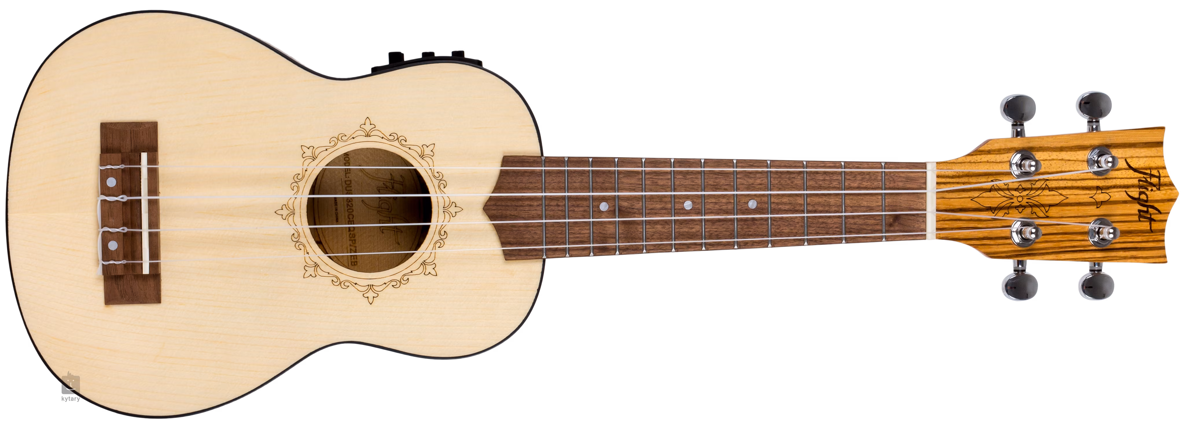 Korpus tego elektroakustycznego ukulele sopranowego składa się z laminowanej świerkowej płyty przedniej oraz laminowanego egzotycznego drewna zebrano z tyłu i po bokach. Szyjka i podstrunnica instrumentu wykonane są z afrykańskiego drewna okoumé i orzecha włoskiego, co również jest dość powszechnie stosowaną kombinacją drewna. Struny są zakotwiczone za pomocą kostnej podstrunnicy i siodełka w odlewanych chromowanych maszynkach do strojenia i podstrunnicy z orzecha włoskiego. Bardziej ekonomiczny design został wzbogacony w modelach z serii Designer o rozetę w formie ozdobnego graweru laserowego.
