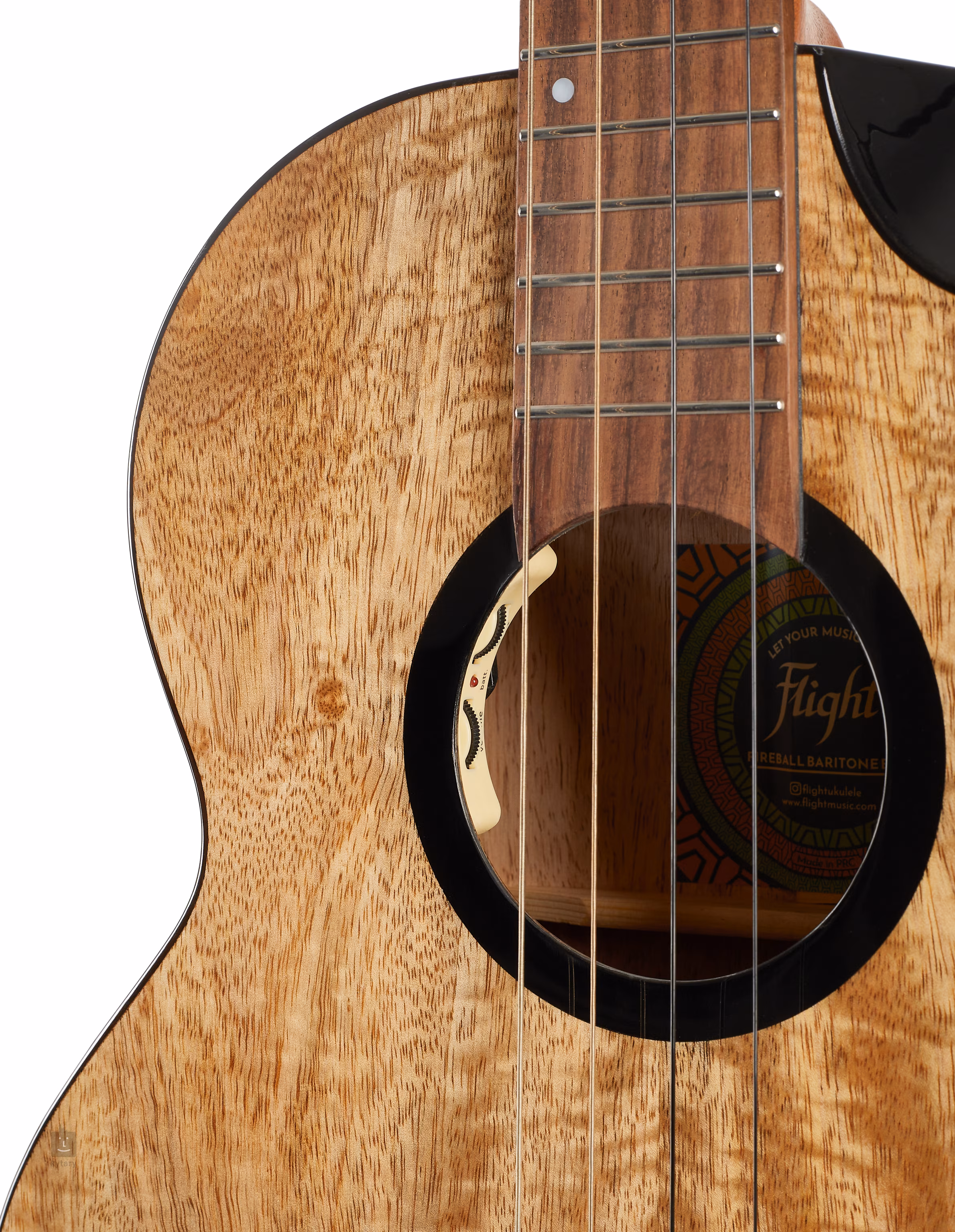 Korpus ukulele barytonowego Fireball wykonany jest z litego drewna mango, które oferuje piękne ciepłe, bogate brzmienie oraz ładne usłojenie. Materiał szyjki i podstrunnicy to wypróbowany i przetestowany afrykański mahoń i palisander stosowany w instrumentach premium. Dobre dopasowanie na wyższych pozycjach podstrunnicy jest ułatwione dzięki eleganckiemu wycięciu w dolnej części korpusu.