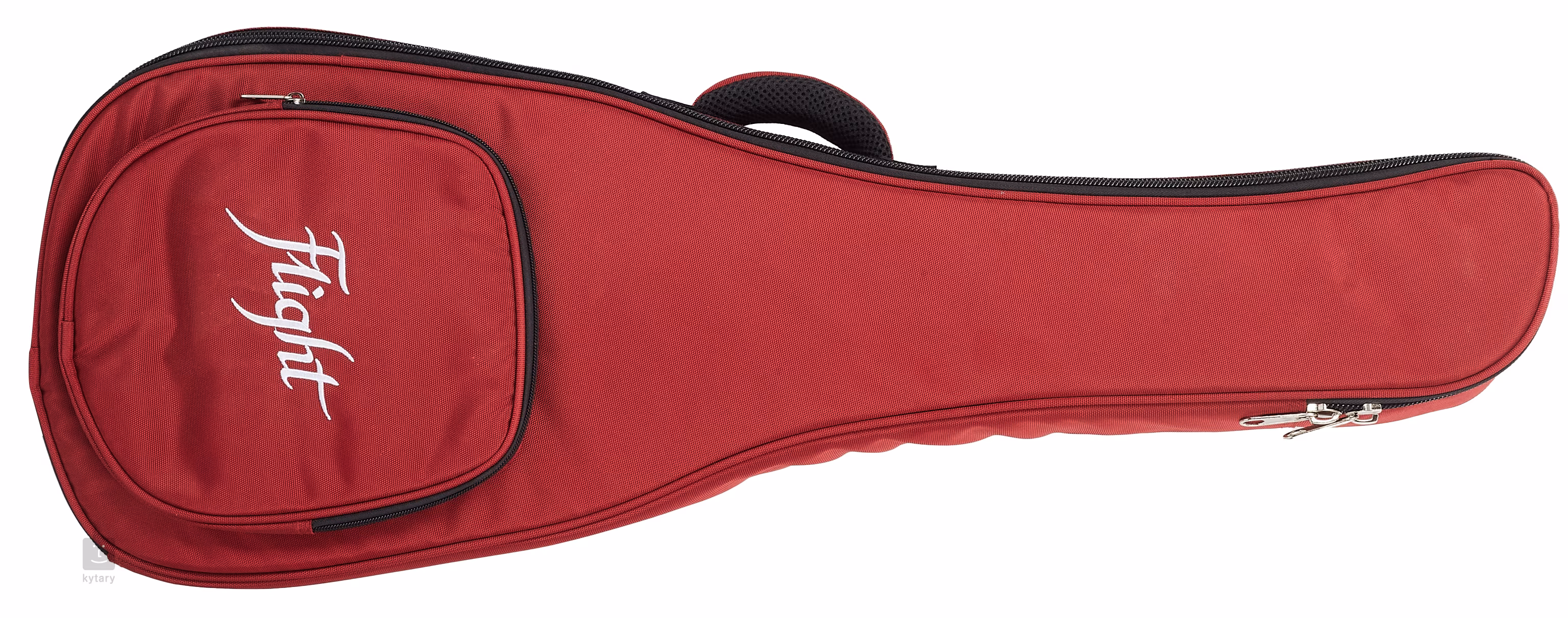 W szerokiej ofercie marki Flight nie mogło zabraknąć guitalele – sześciostrunowego ukulele, które łączy w sobie design „hiszpańskiej gitary” z kompaktowym kształtem ukulele. Guitalele GUT850 oferuje sprawdzoną kombinację przedniej płyty z litego świerku oraz tylnej płyty i boków z warstwowego mahoniu. Do mahoniowego gryfu przyklejony jest palisandrowy podstrunnica z dziewiętnastoma progami. Orientację na powierzchni podstrunnicy ułatwiają znaczniki pozycji. Stabilność strojenia i dobre wybrzmienie gwarantuje mocowanie strun przez zerowy próg i kompensowaną siodełko z kości w otwartych mechanizmach strojących typu gitarowego oraz w tzw. strunach typu string-through, koncepcji zaczerpniętej z konstrukcji gitar, gdzie struny są prowadzone przez strunociąg przez przednią płytę instrumentu. Ładne wykończenie podkreśla perłowa rozeta (abalone). Guitalele jest dostarczane w stylowym czerwonym pokrowcu z 15 mm grubą wyściółką. Strojenie ADGCEA. Słoweńska marka Flight to kolejna interesująca pozycja wśród producentów ukulele. Oferuje szeroką gamę tych popularnych, kompaktowych instrumentów w klasycznych i mniej tradycyjnych kształtach oraz standardowych rozmiarach. Początkujących graczy i wędrowców z duszą muzyka ucieszą wysokiej jakości, niedrogie modele ukulele wykonane z klasycznego i egzotycznego drewna w naturalnych i kolorowych wykończeniach lub modele podróżne z serii Travel Series z korpusem z wytrzymałego tworzywa sztucznego. Nie zostaną pominięci nawet bardziej wymagający muzycy i profesjonalni gracze, którzy mogą wybierać spośród najwyższej jakości półmasywnych/całkowicie masywnych modeli ukulele elektroakustycznych.