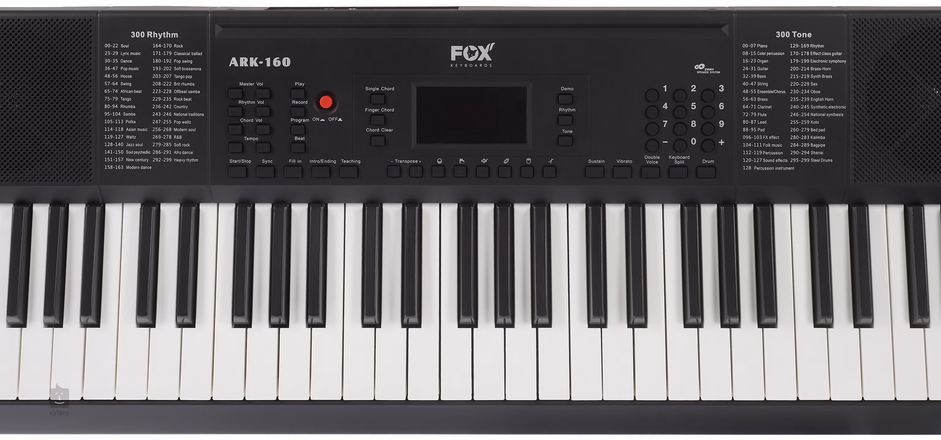 FOX 160 oferuje 61 klawiszy o standardowej wielkości, 128 dźwięków i 128 automatycznych akompaniamentów. Istnieją również zaawansowane funkcje, takie jak Split (podział klawiatury w celu grania na dwóch instrumentach jednocześnie), Dual Voice (nakładanie dźwięków) oraz ustawienia Sustaine (reverb) i Vibrato. Klawiaturę można również transponować, co docenią zarówno początkujący, jak i zaawansowani gracze. Jest też możliwość grania akordów jednym palcem, funkcja Record do nagrywania swoich eksperymentów, czy metronom i system samouczków. Do klawiszy można podłączyć mikrofon.