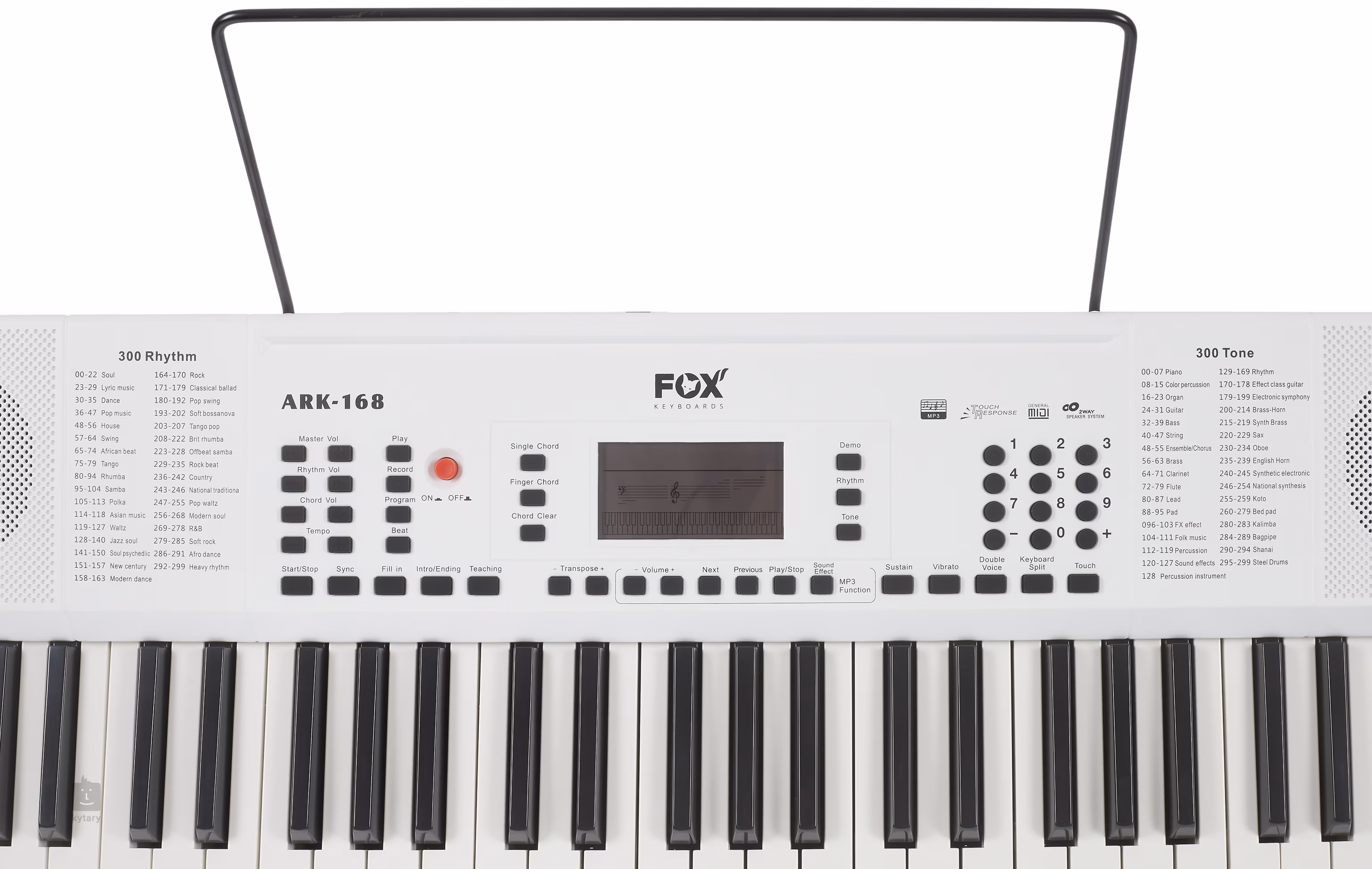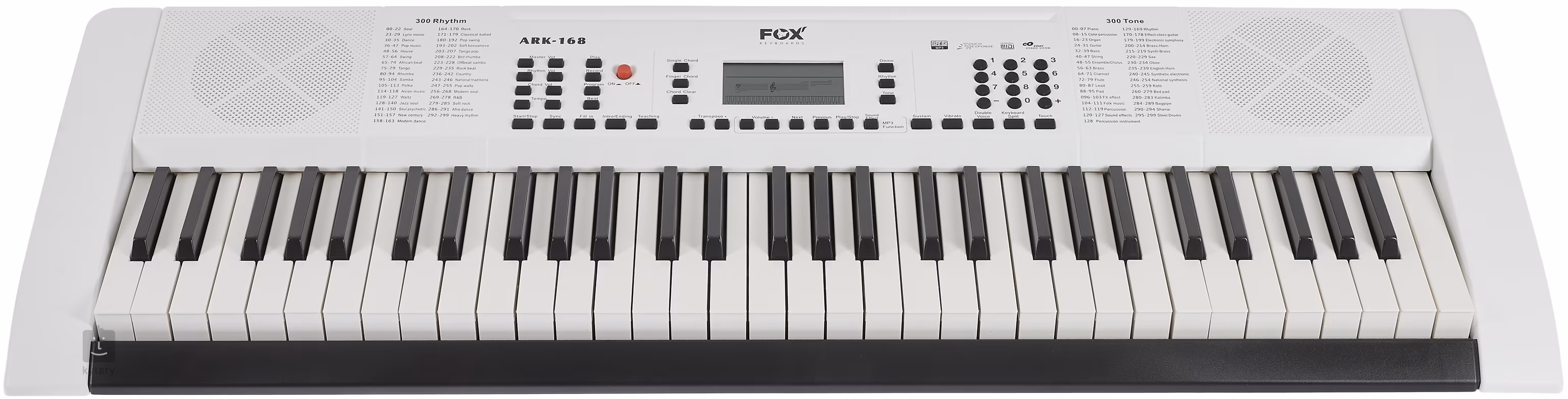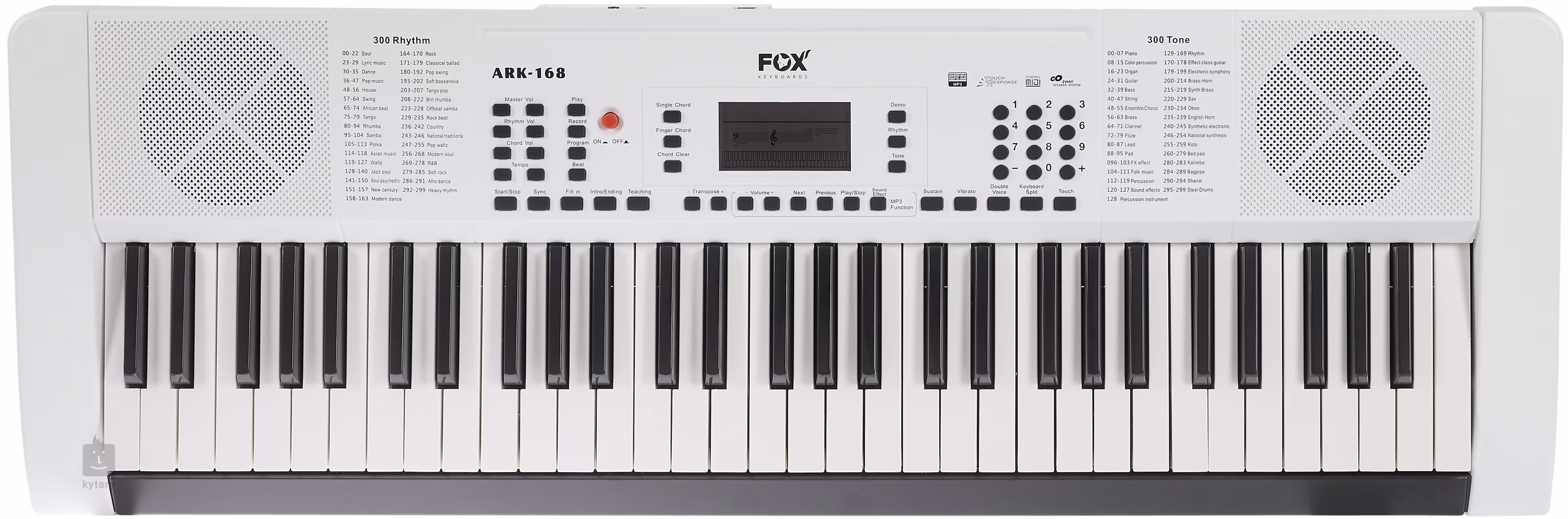 FOX 168 oferuje 61 klawiszy o standardowej wielkości z dynamiką, 128 dźwięków i 128 automatycznych akompaniamentów. Istnieją również zaawansowane funkcje, takie jak Split (podział klawiatury w celu grania na dwóch instrumentach jednocześnie), Dual Voice (nakładanie dźwięków) oraz ustawienia Sustaine (reverb) i Vibrato. Klawiaturę można również transponować, co docenią zarówno początkujący, jak i zaawansowani gracze. Oczywiście jest możliwość grania akordów jednym palcem, funkcja Record do nagrywania swoich eksperymentów lub metronom i system samouczków. Do klawiszy można podłączyć mikrofon lub urządzenie zewnętrzne z ulubionymi nagraniami i jamować z nimi. Dzięki wyjściu MIDI, klawisze mogą być również używane jako kontroler dla oprogramowania muzycznego.
