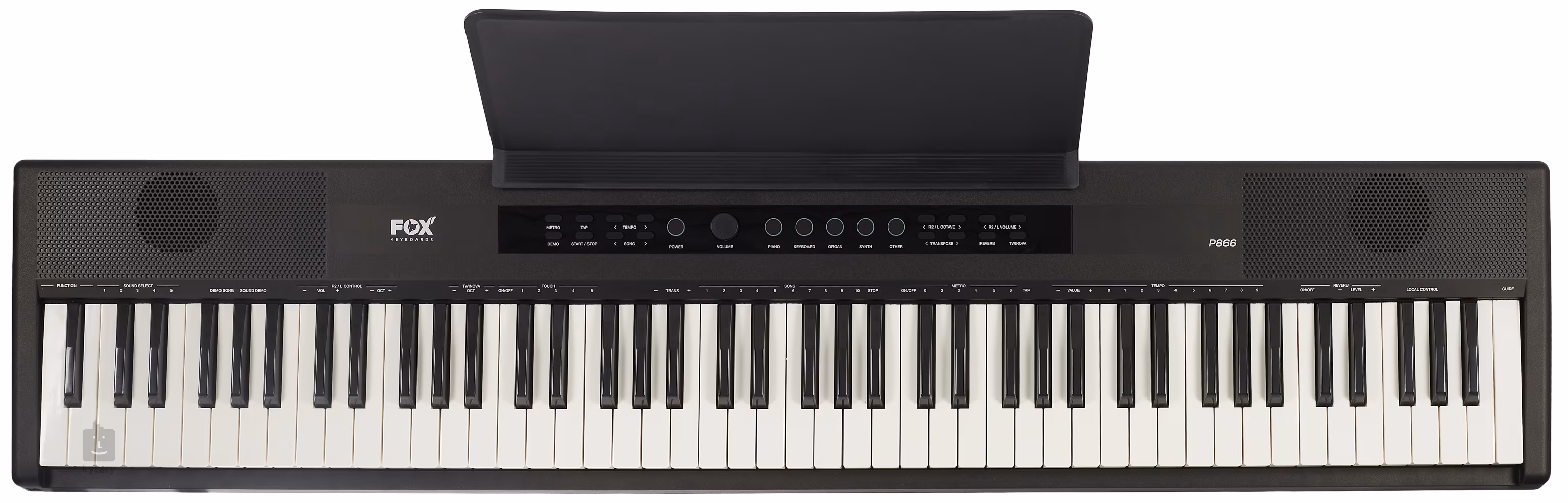 FOX P866 to proste pianino sceniczne z 88 standardowymi klawiszami i regulowaną dynamiką uderzeń.