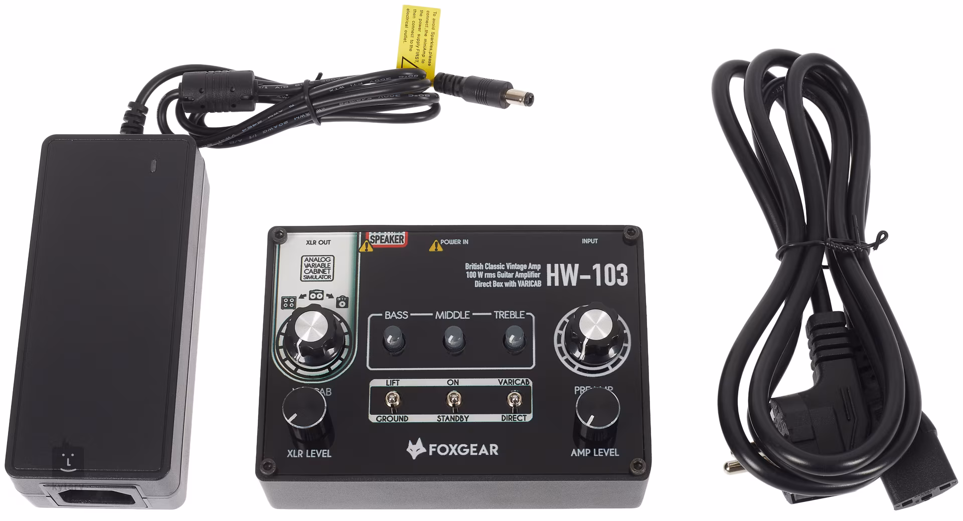 Do tego produktu chętnie zaoferujemy Państwu futerał Razzor z naszej własnej produkcji, zaprojektowany z myślą o maksymalnej ochronie podczas transportu. Futerały produkujemy na zamówienie i dokładnie według Państwa życzeń. Inspiracje i szczegóły można znaleźć na stronie razzorcases.cz. Włoska marka Foxgear wprowadza na rynek cztery wzmacniacze gitarowe w formacie efektów pedałowych. Nie są to nowoczesne profilery/modelery cyfrowe, ale w pełni analogowe wzmacniacze gitarowe, które zamiast mnóstwa presetów oferują konkretne brzmienie jednego znanego wzmacniacza gitarowego – brytyjskiego lub amerykańskiego. Model HW-103 jest wyraźnie inspirowany wzmacniaczami gitarowymi Hiwatt z lat 70. XX wieku. Oferuje moc 100 W RMS wzmacniacza końcowego (przy impedancji 4 omy), trzypasmowy korektor, regulator Amp Level (Master Volume), Preamp (Preamp Gain), przełączalny emulator głośnika VariCab z symulacjami kolumn 1x12", 2x12" lub 4x12", wyjście XLR z regulatorem głośności wyjścia XLR i wyjście do zewnętrznej kolumny głośnikowej (impedancja 4/8/16 omów). Standardowe wyjście Speaker Out może być używane równolegle z wyjściem XLR DI, umożliwiając wysyłanie sygnału do kolumny głośnikowej i jednocześnie bezpośrednio do miksera. Firma Foxgear powstała w 2017 roku jako wspólny projekt włoskich marek butikowych Baroni i Gurus, których produkty są używane przez wielu światowej sławy muzyków (David Gilmour, Steve Lukather, Doug Aldrich, Phil X i inni).