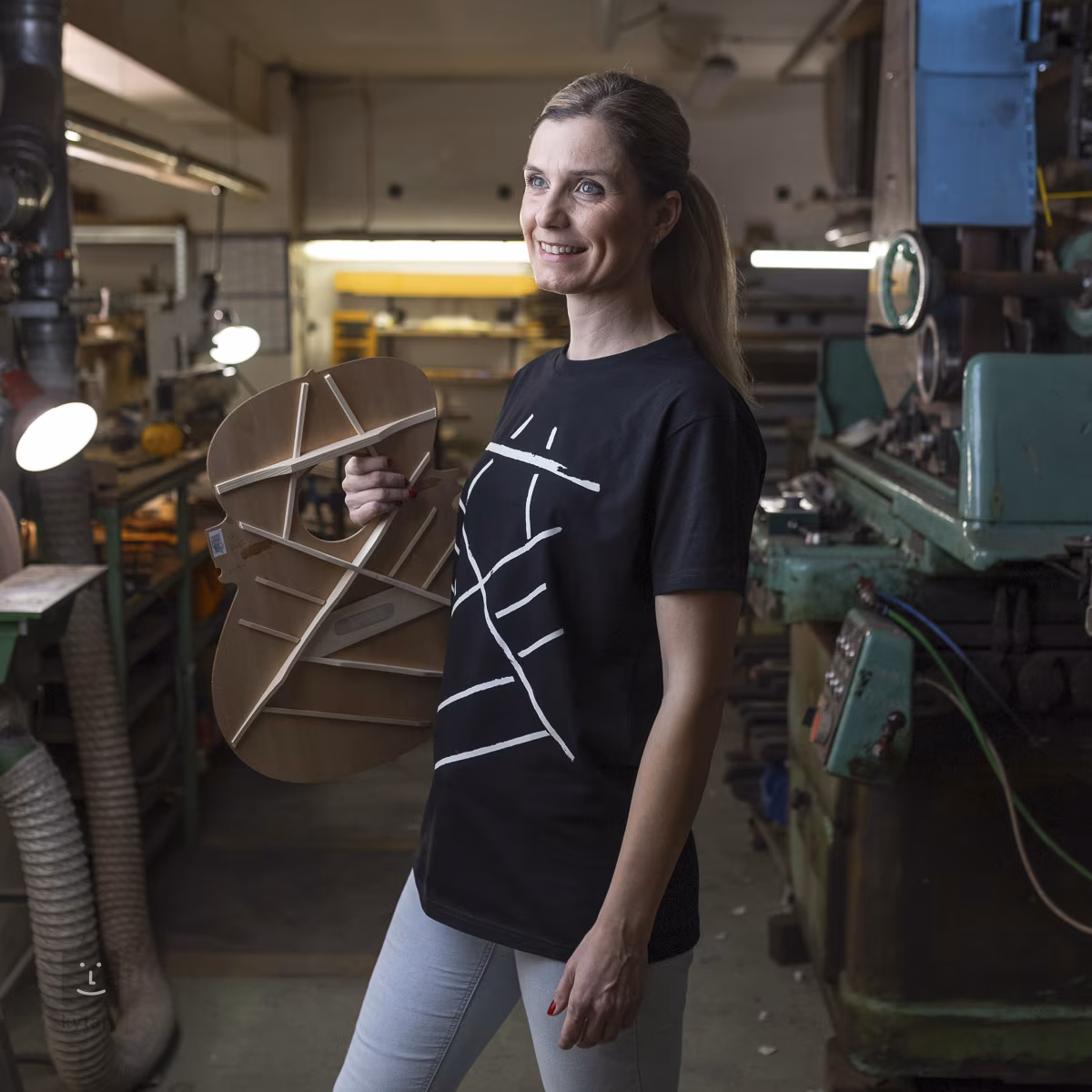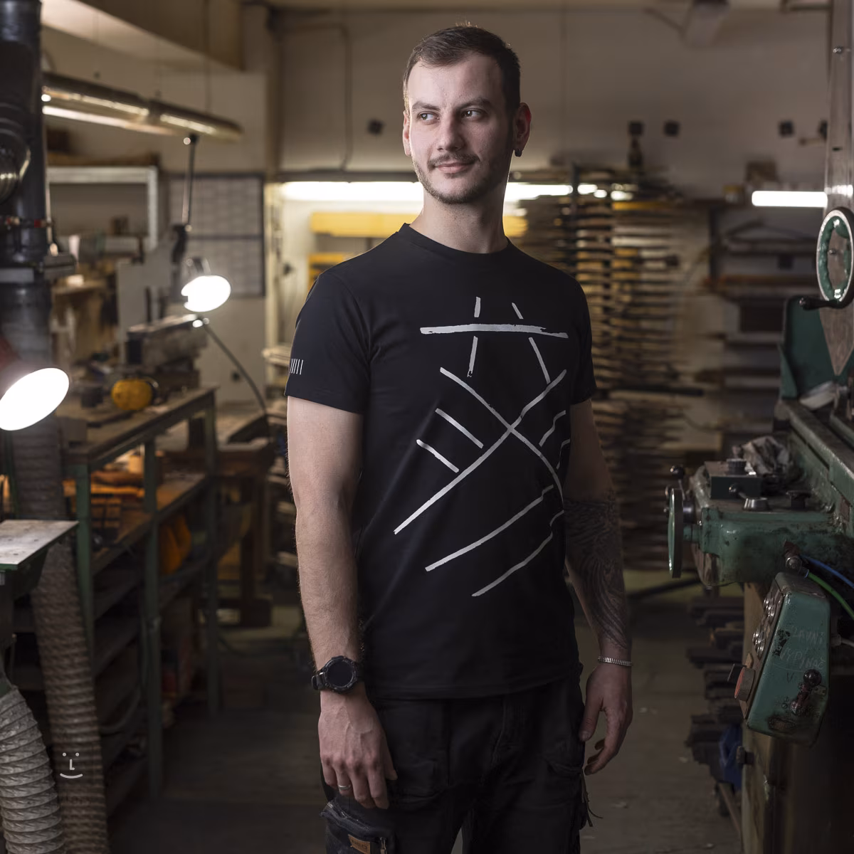 Czarny T-shirt Furch z nadrukiem usztywniającym jest wykonany w 100% z bawełny. Koszulkę zdobi nadruk w gitarowe prążki oraz charakterystyczna grafika "6 Strings". Minimalistyczny, uniseksowy design oferuje połączenie prostoty, stylu i wygody, dzięki czemu koszulka sprawdzi się zarówno w pracy, jak i na koncercie. Ponadto, dzięki wysokiej jakości tkaninie o dużej gęstości, koszulka będzie Ci służyć przez wiele lat.