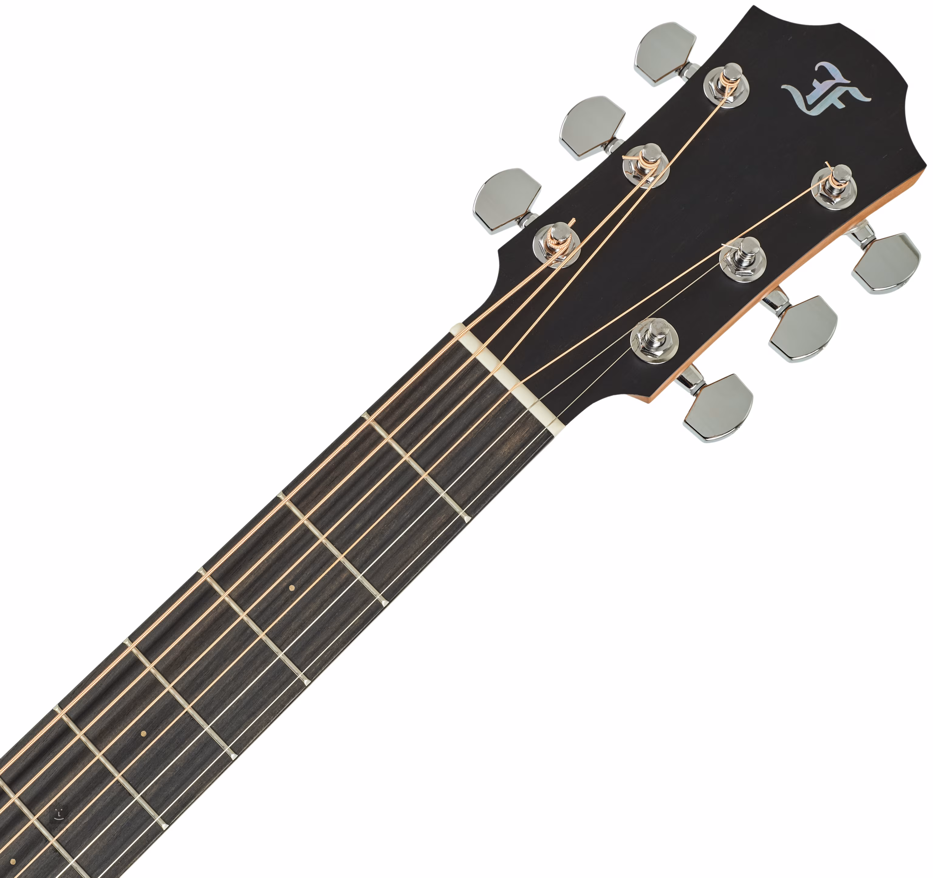 Orientację na hebanowym gryfie ułatwiają boczne i przednie punktowe oznaczenia pozycyjne. Progi ze skróconymi nóżkami celowo nie sięgają do krawędzi gryfu - dzięki temu nie dochodzi do ich wysuwania się spowodowanego wysychaniem gryfu przy niższej wilgotności powietrza. Precyzyjne i stabilne strojenie gwarantują chromowane mechanizmy firmowe o przełożeniu 1:18. Ładne wykończenie podkreślają obramowanie i osłona z imitacji szylkretu oraz rozeta z nakładką z orzecha.