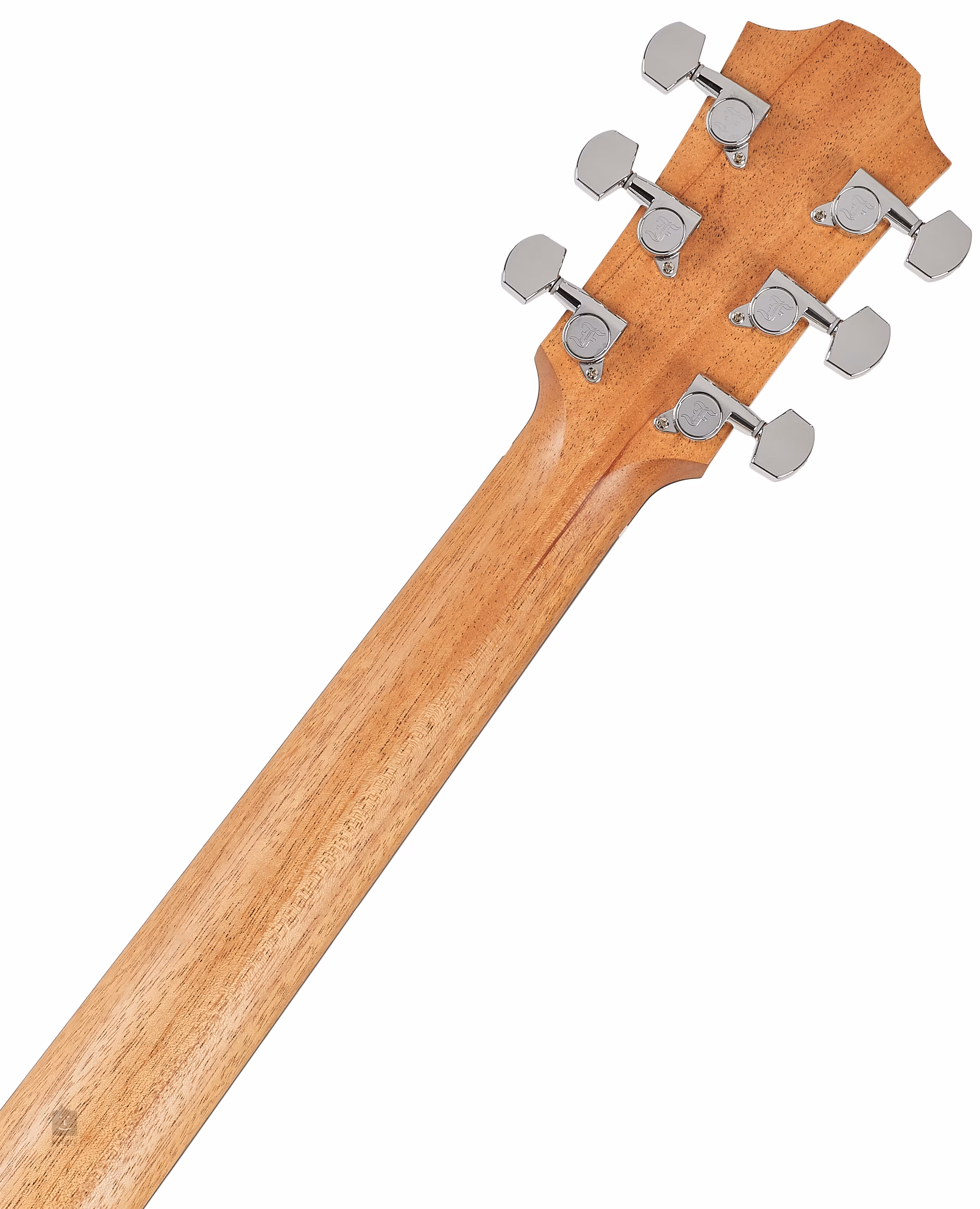 Ładne wykonanie podkreśla rozeta wykonana z podwójnego pierścienia z czarną wkładką z orzecha włoskiego oraz czarny binding i pickguard. Orientację na hebanowej podstrunnicy ułatwia przednia kropka i boczne liniowe znaczniki pozycji. Precyzyjne i stabilne strojenie gwarantuje chromowany firmowy mechanizm z przełożeniem 1:18.
