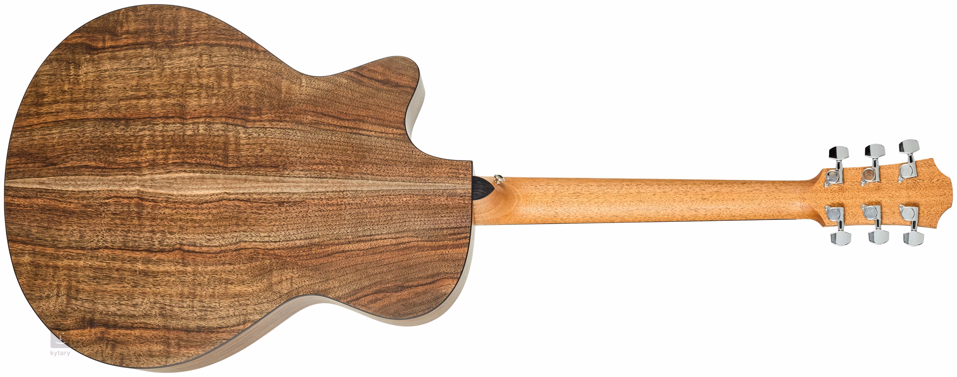 Orientację na hebanowym gryfie ułatwiają boczne i przednie punktowe oznaczenia pozycyjne. Progi ze skróconymi nóżkami celowo nie sięgają do krawędzi gryfu - dzięki temu nie dochodzi do ich wysuwania się spowodowanego wysychaniem gryfu przy niższej wilgotności powietrza. Precyzyjne i stabilne strojenie gwarantują chromowane mechanizmy firmowe o przełożeniu 1:18. Ładne wykończenie podkreślają obramowanie i osłona z imitacji szylkretu oraz rozeta z nakładką z orzecha.