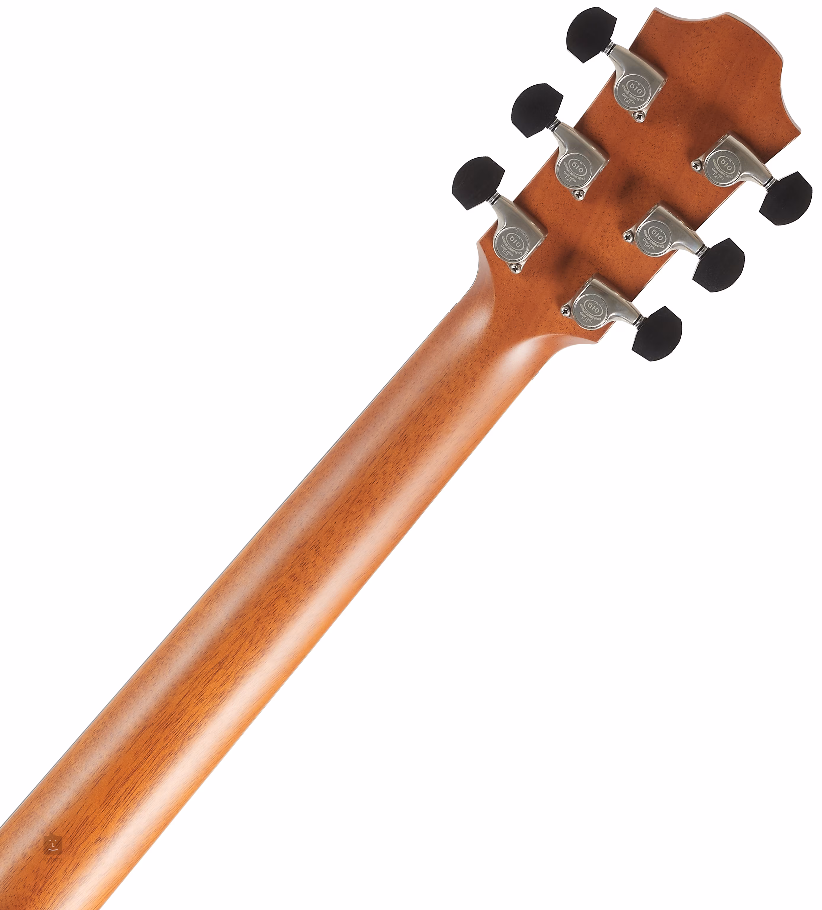 Przezroczysty pickguard pozwala uwydatnić naturalne usłojenie drewna, nie wpływając jednocześnie na rezonans płyty rezonansowej. Stabilne strojenie gwarantuje najwyższej klasy mechanika Gotoh 510 w kolorze srebrnej patyny z polerowanymi hebanowymi kołkami i precyzyjnym przełożeniem 1:21.