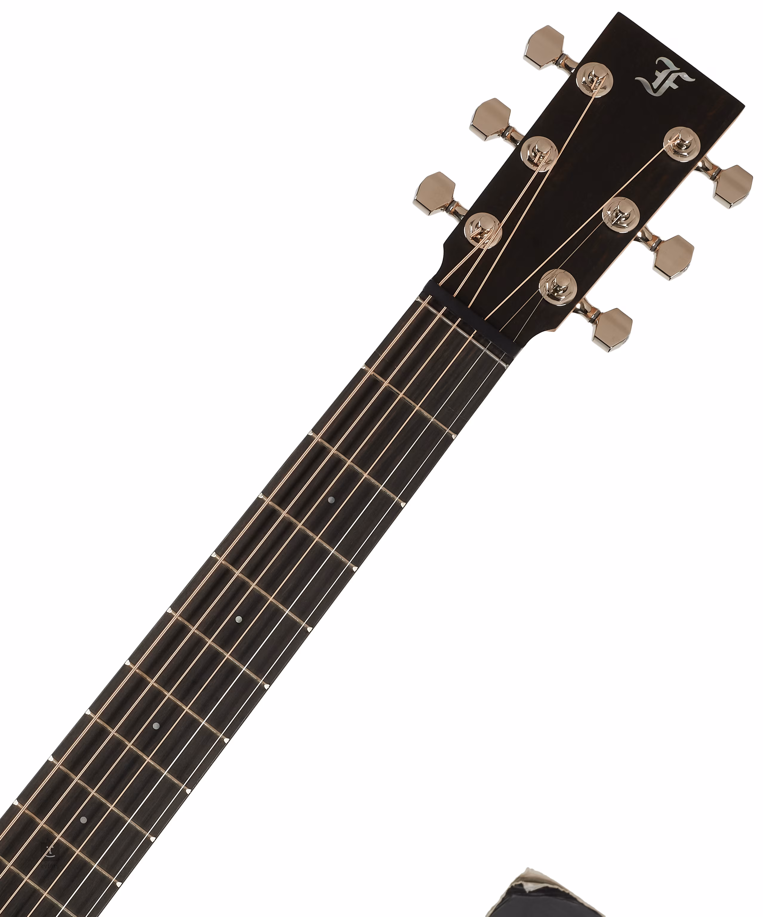 Jakość strojenia nawet po ponownym złożeniu zapewnia blokowany mechanizm strojenia Furch Machine z przełożeniem 1:15. Stylowy wygląd Little Jane jest podkreślony przez oprawę korpusu z imitacji skorupy żółwia.