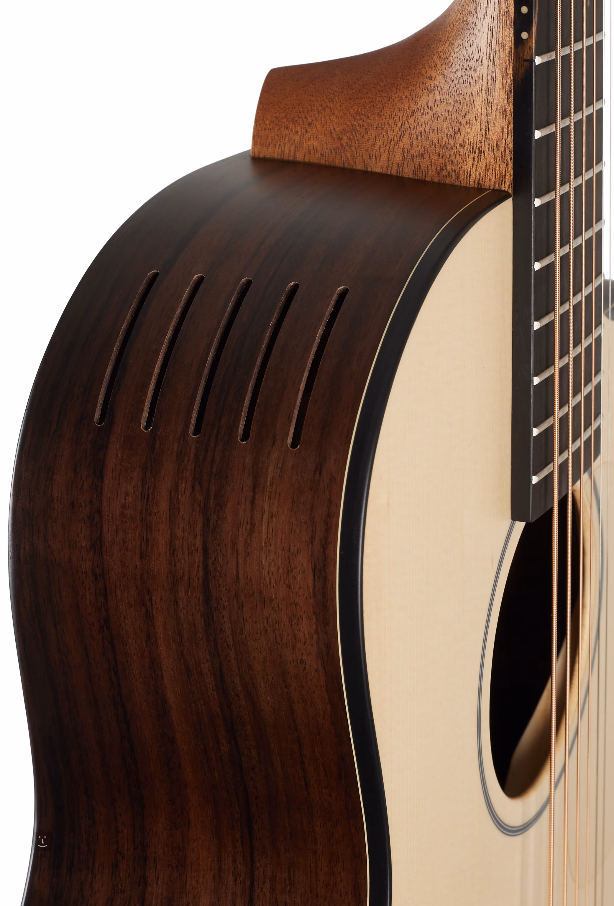 Przód Pioneer ER wykonany jest z litego świerku północnoamerykańskiego Engelmann, natomiast tył z litego palisandru indyjskiego. Usztywnienie boków zwiększa odporność instrumentu na trudy i urazy związane z podróżowaniem. Soundport Booster, rezonator umieszczony w tylnej części gitary, zwiększa klarowność, głośność i rezonans dźwięku gitary, zapewniając jeszcze bogatsze i bardziej intensywne wrażenia z gry.