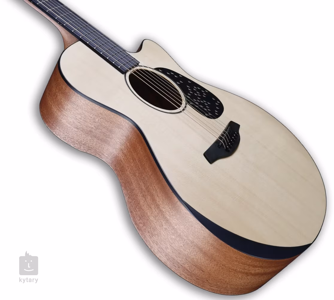 Jest to instrument o nowoczesnym kształcie korpusu Grand Auditorium, odpowiedni zarówno do gry palcami (fingerpicking), jak i kostką. Płyta przednia gitary wykonana jest z litego drewna świerku Engelmanna klasy A pochodzącego z Ameryki Północnej, natomiast płyta tylna i boki wykonane są z litego mahoniu. Płyta przednia, tylna i boki są pokryte wykończeniem Open Pore, które zapewnia gitarze ochronę i wspiera naturalne właściwości brzmieniowe drewna. Doskonałe właściwości akustyczne instrumentu potęguje indywidualne strojenie płyty przedniej i tylnej.