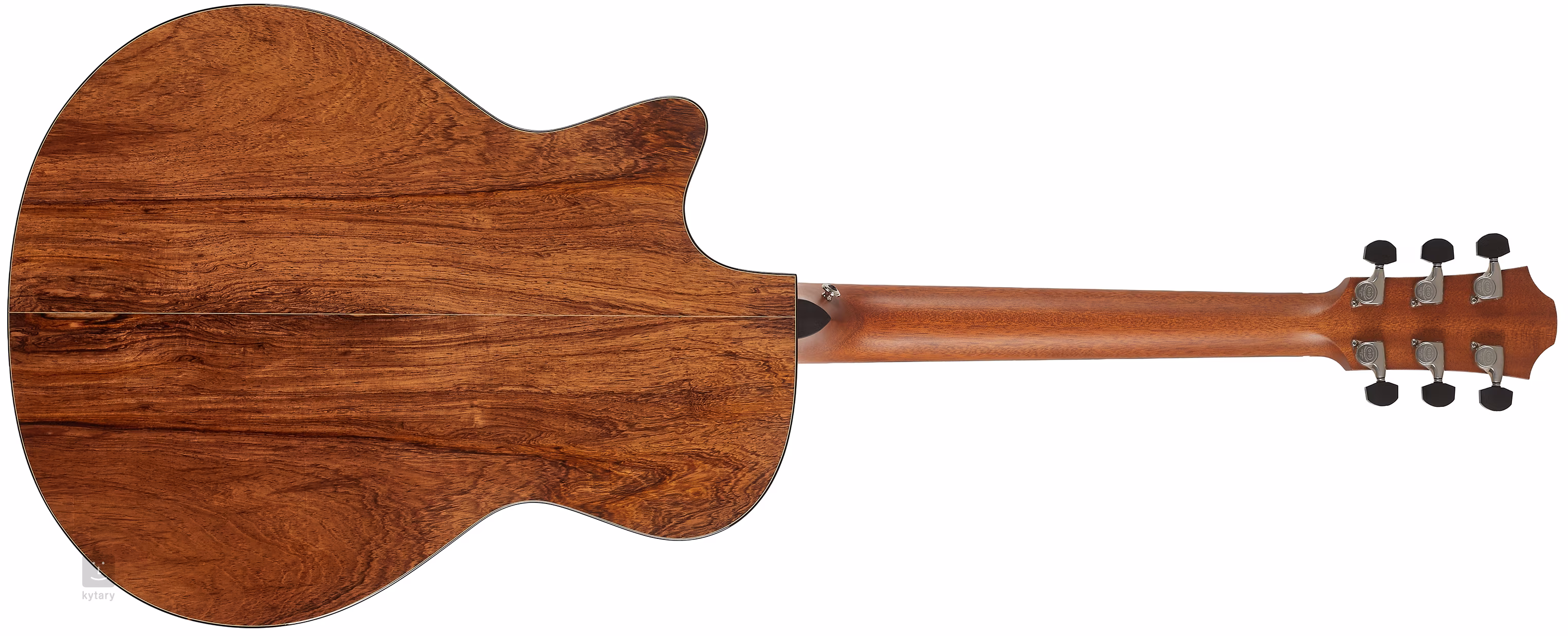 Orientację na hebanowym gryfie ułatwiają eleganckie okrągłe znaczniki pozycji z cienką linią konturową z białej masy perłowej oraz boczne perłowe znaczniki punktowe. Przezroczysta płytka ochronna pozwala wydobyć naturalny rys drewna, nie wpływając jednocześnie na rezonans płyty przedniej. Stabilne strojenie gwarantują najwyższej klasy mechanizmy Gotoh 510 w srebrnej patynie z polerowanymi ebenowymi kołkami i bardzo delikatnym przełożeniem 1:21. Ładne wykończenie podkreślają delikatne detale w postaci obramowania korpusu z imitacji szylkretu i podwójnej rozety z inkrustacją z zielonego abalonu z czarno-białą linią.