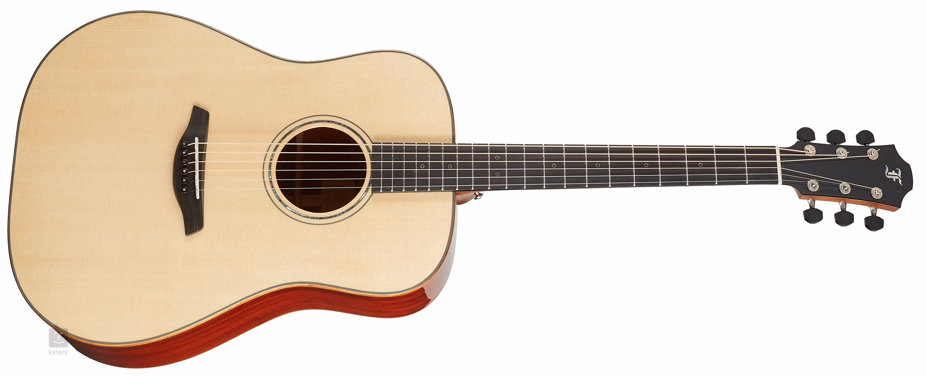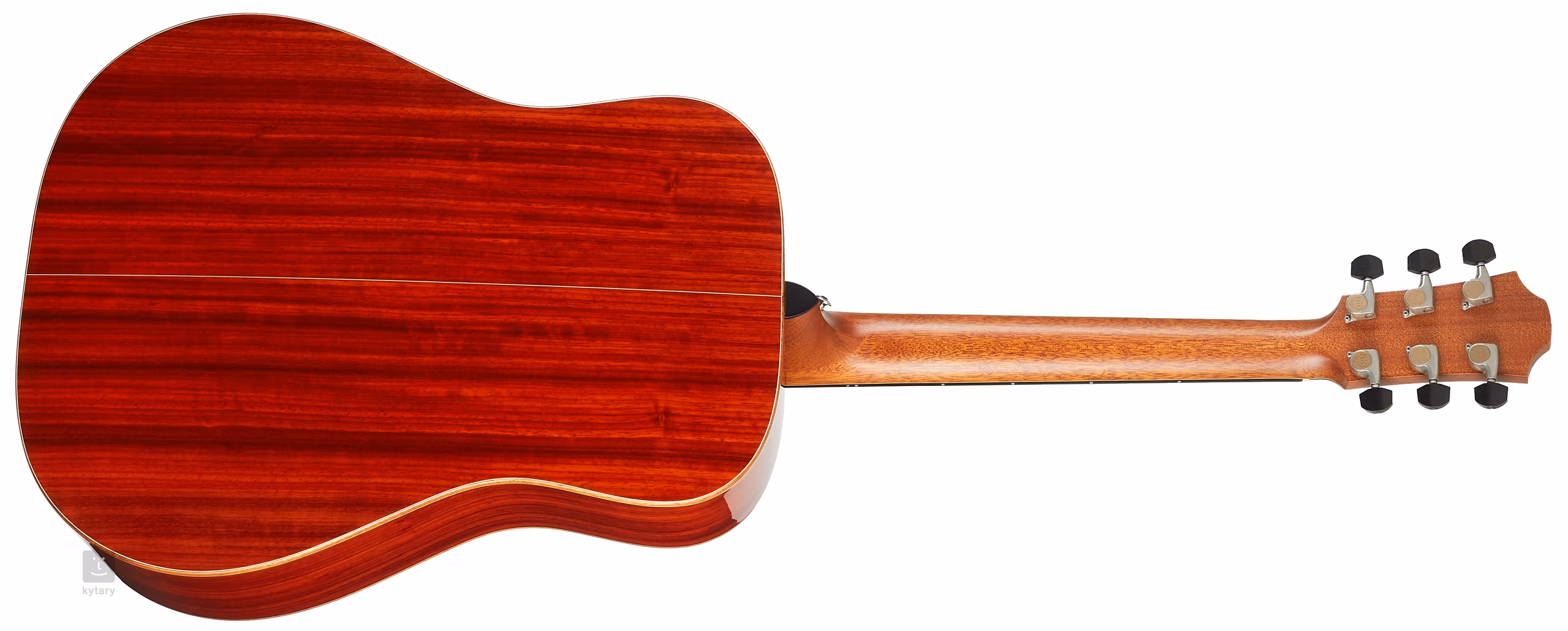 Orientację na hebanowym gryfie ułatwiają eleganckie przednie okrągłe znaczniki pozycji z cienką konturową linią z białej masy perłowej oraz boczne perłowe znaczniki punktowe. Przezroczysta płytka ochronna pozwala wydobyć naturalny rys drewna, nie wpływając jednocześnie na rezonans płyty przedniej. Stabilne strojenie gwarantują najwyższej klasy mechanizmy Gotoh 510 w srebrnej patynie z polerowanymi hebanowymi kołkami i bardzo delikatnym przełożeniem 1:21.