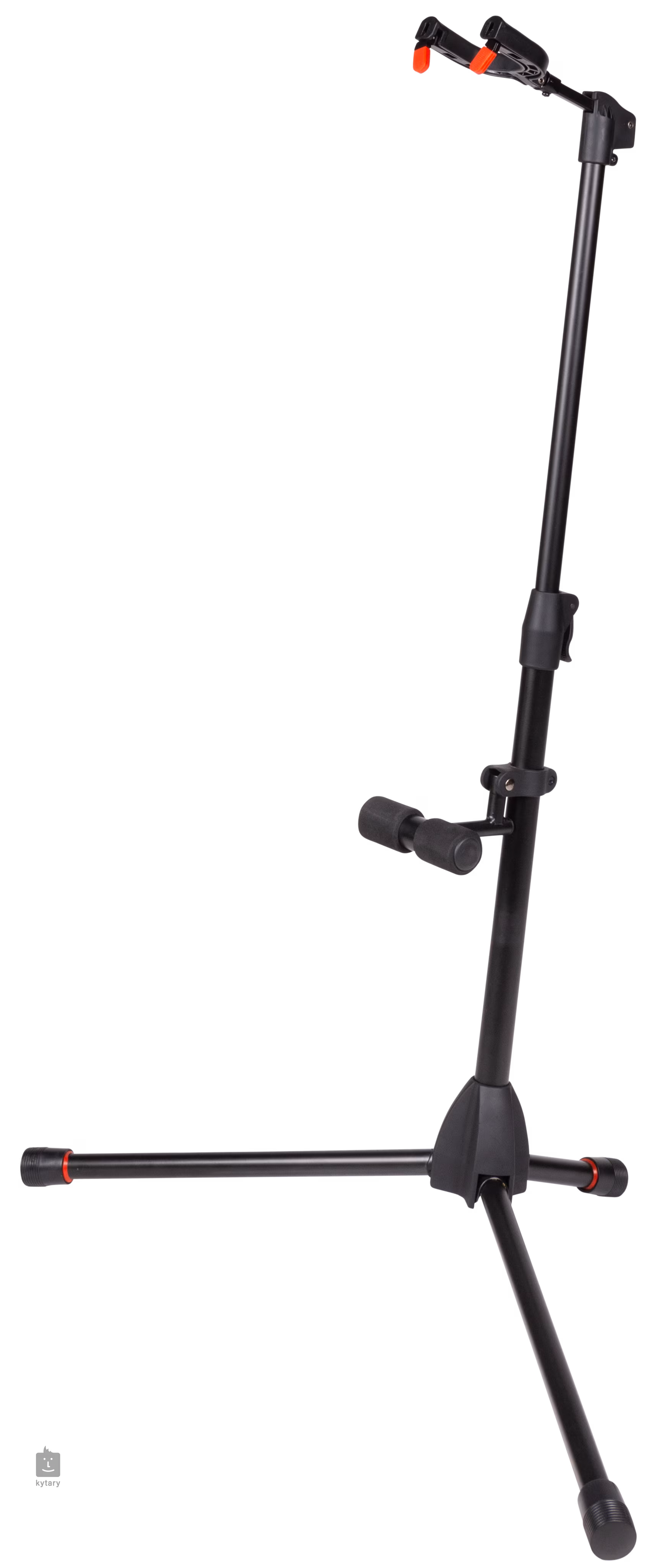 Ten statyw gitarowy firmy Gator Frameworks nadaje się do przechowywania gitar akustycznych i elektrycznych lub basowych. Zapewnia bardzo stabilną metalową konstrukcję, która niezawodnie utrzyma instrument i zapewni, że będzie on zawsze pod ręką i bezpieczny. Główka stojaka posiada zamki ochronne, które automatycznie zamykają się po włożeniu gitary, zapobiegając jej wypadnięciu i ewentualnemu uszkodzeniu. W dolnej części gitara spoczywa na piankowym przedłużeniu. Wszystkie części stykające się z instrumentem są gumowane, aby zapobiec zarysowaniom.