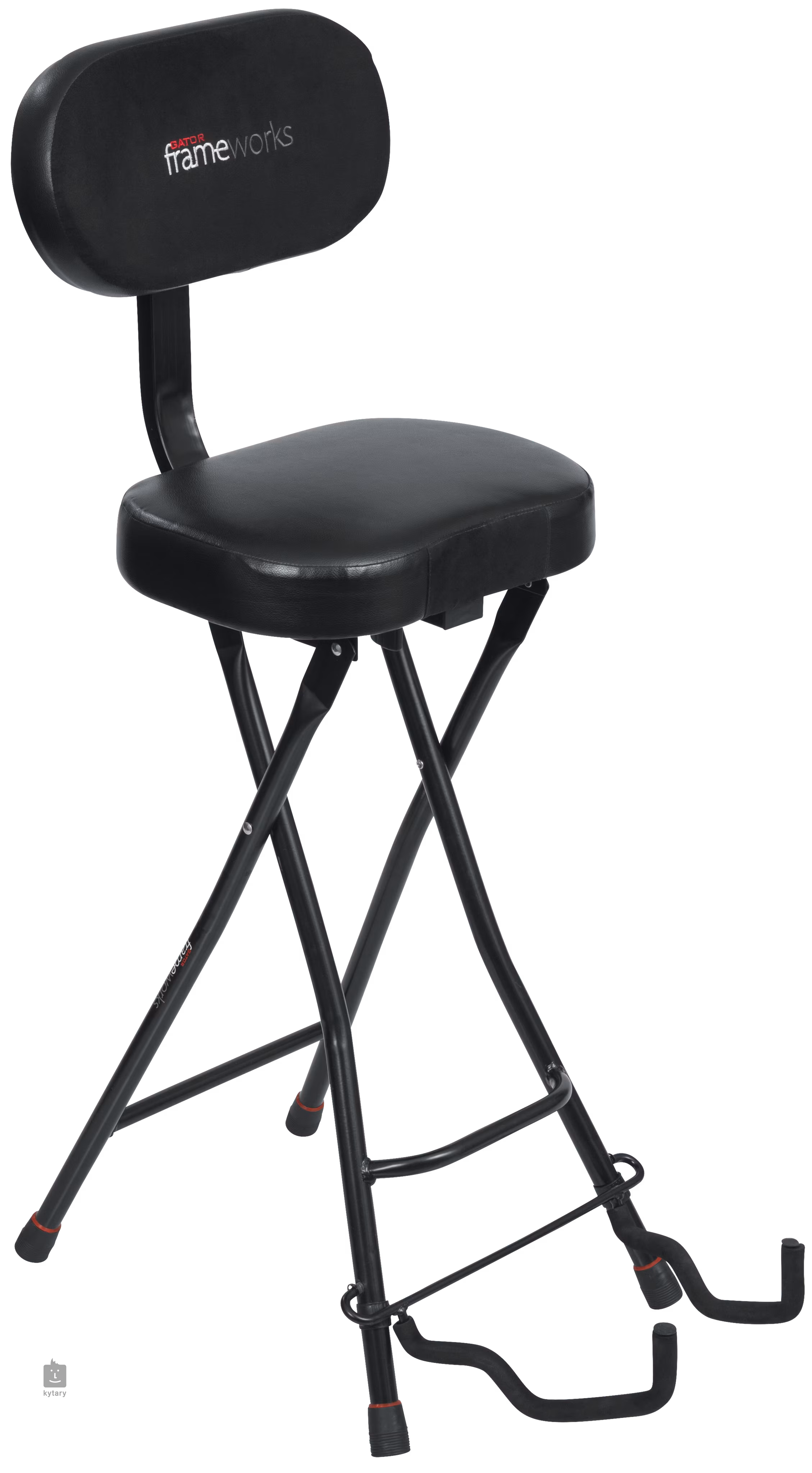 Stołek gitarowy połączony z praktycznym uchwytem na gitarę od znanego producenta Gator Frameworks. Wykonane z wytrzymałego aluminium siedzisko jest tapicerowane, dzięki czemu jest nie tylko wygodne, ale także trwałe i posiada oparcie zapewniające komfort nawet podczas dłuższych sesji.