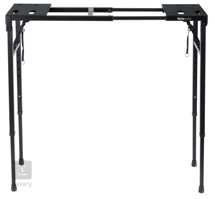 Solidny składany statyw do instrumentów klawiszowych z regulacją wysokości i długości. Szerokość powierzchni podparcia jest stała.