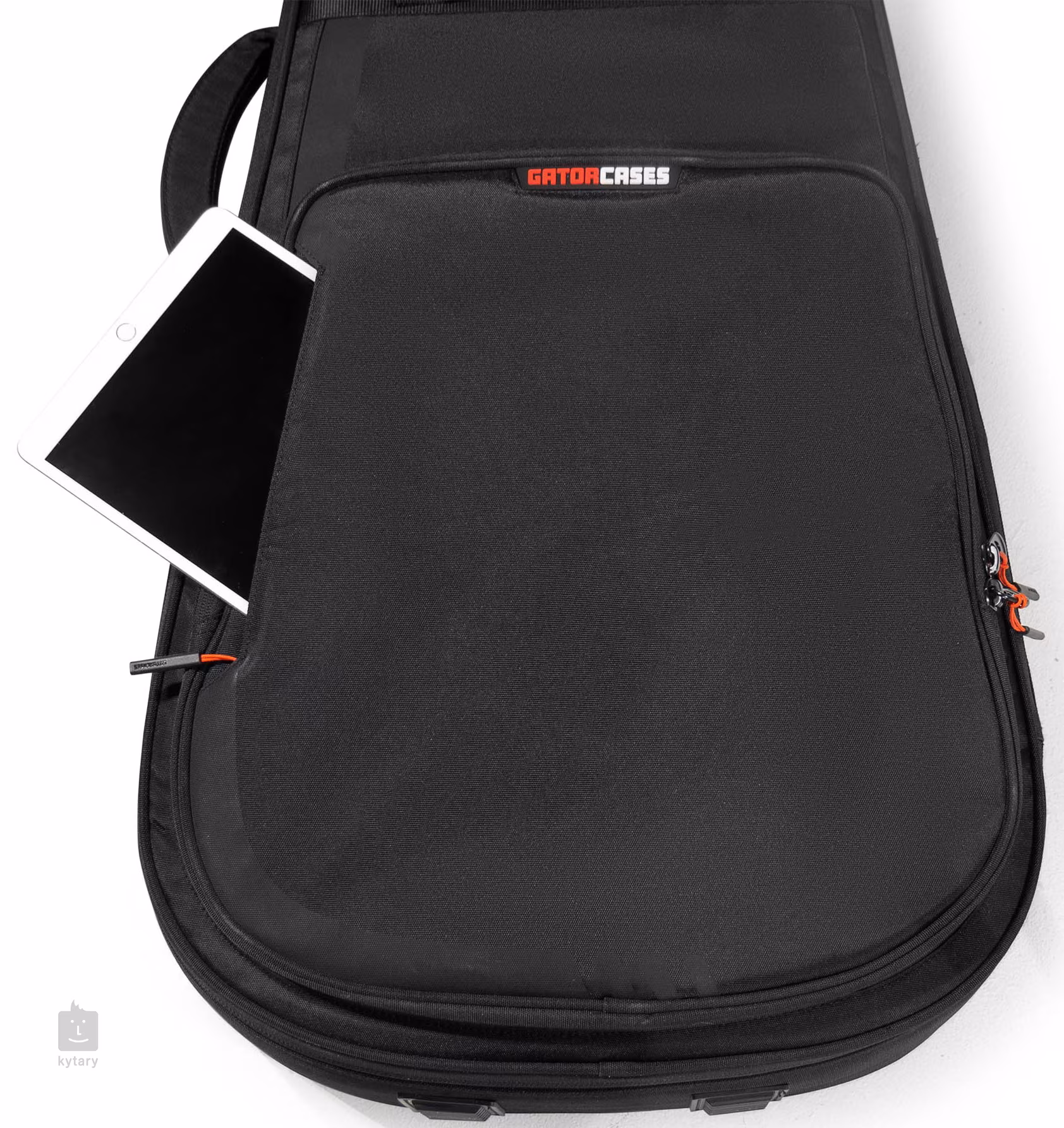 Podczas podróży docenisz ukryte paski na ramię w stylu plecaka z wbudowanym otwieraczem do butelek. Dzięki wzmocnionym, gumowanym uchwytom umieszczonym z przodu, z tyłu i z boku futerał można wygodnie nosić w różnych pozycjach. Duża przednia kieszeń zapewnia wystarczająco dużo miejsca na kable, struny i akcesoria, a ukryta kieszeń z tyłu pomieści dokumenty, telefon lub portfel. Główne zamki błyskawiczne są kompatybilne z zamkami TSA, dzięki czemu z futerałem bez problemu przejdziesz kontrolę lotniskową. W zestawie znajduje się również stylowa osłona przeciwdeszczowa, która chroni pokrowiec i instrument przed niekorzystnymi warunkami pogodowymi.
