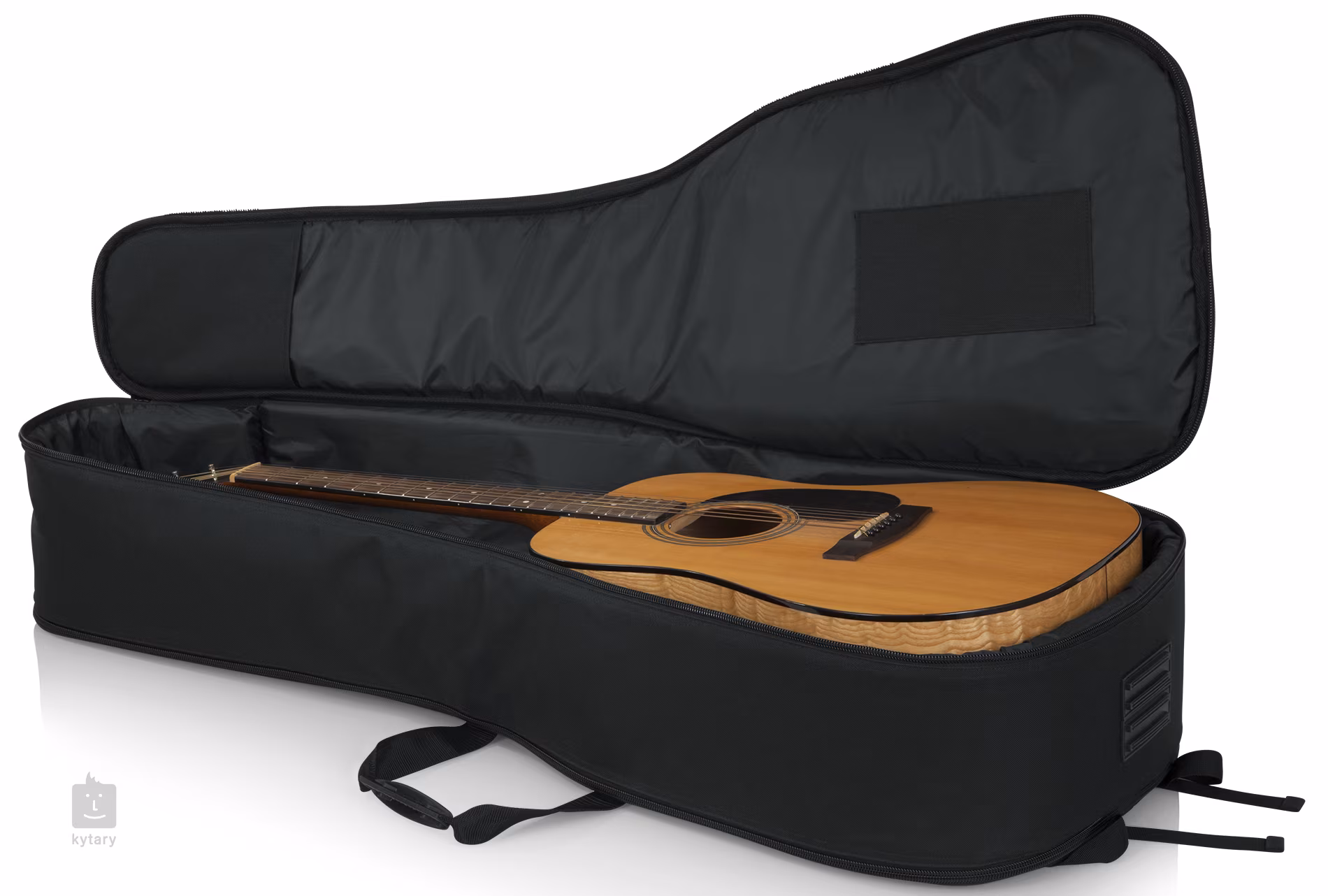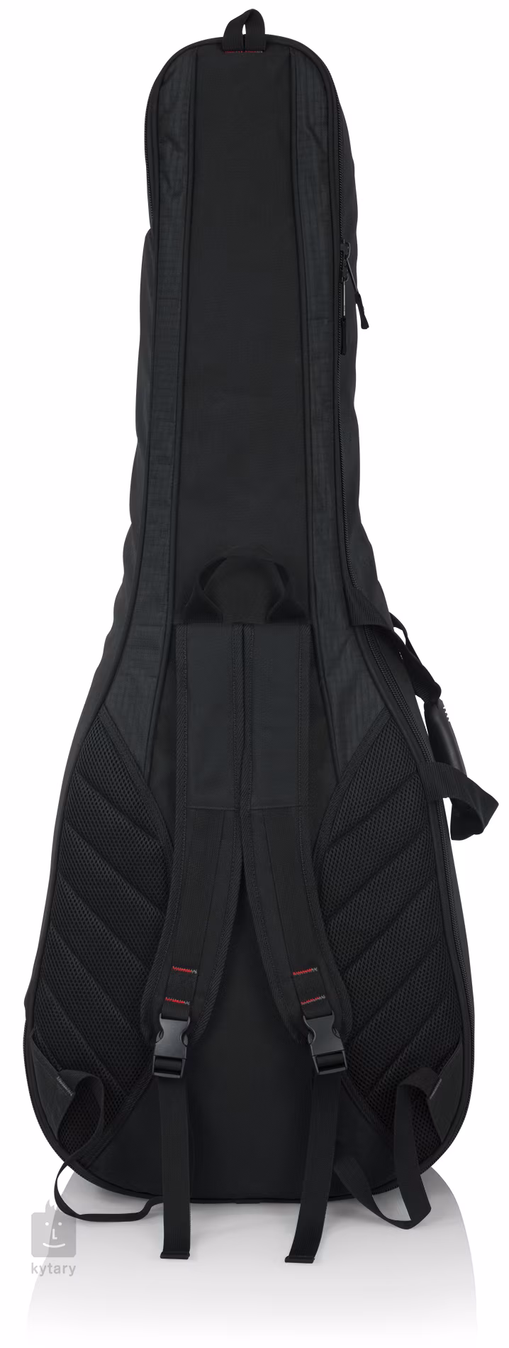 Futerał jest wykonany z wytrzymałego nylonu i wzmocniony z każdej strony 20-milimetrową wyściółką z pianki GFLEX, która zapewnia maksymalną ochronę przed uderzeniami i uszkodzeniami mechanicznymi. Wewnętrzna konstrukcja zawiera wzmocnienia w okolicy główki i mostka, które zapobiegają zużyciu w tych wrażliwych miejscach. Aby ułatwić organizację drobnych akcesoriów, dostępna jest przednia kieszeń, w której zmieszczą się struny, stroik lub inne dodatki, a także unikalny Pick-Clip na głowicy zamka błyskawicznego, który służy do mocowania awaryjnego kostki do gry.