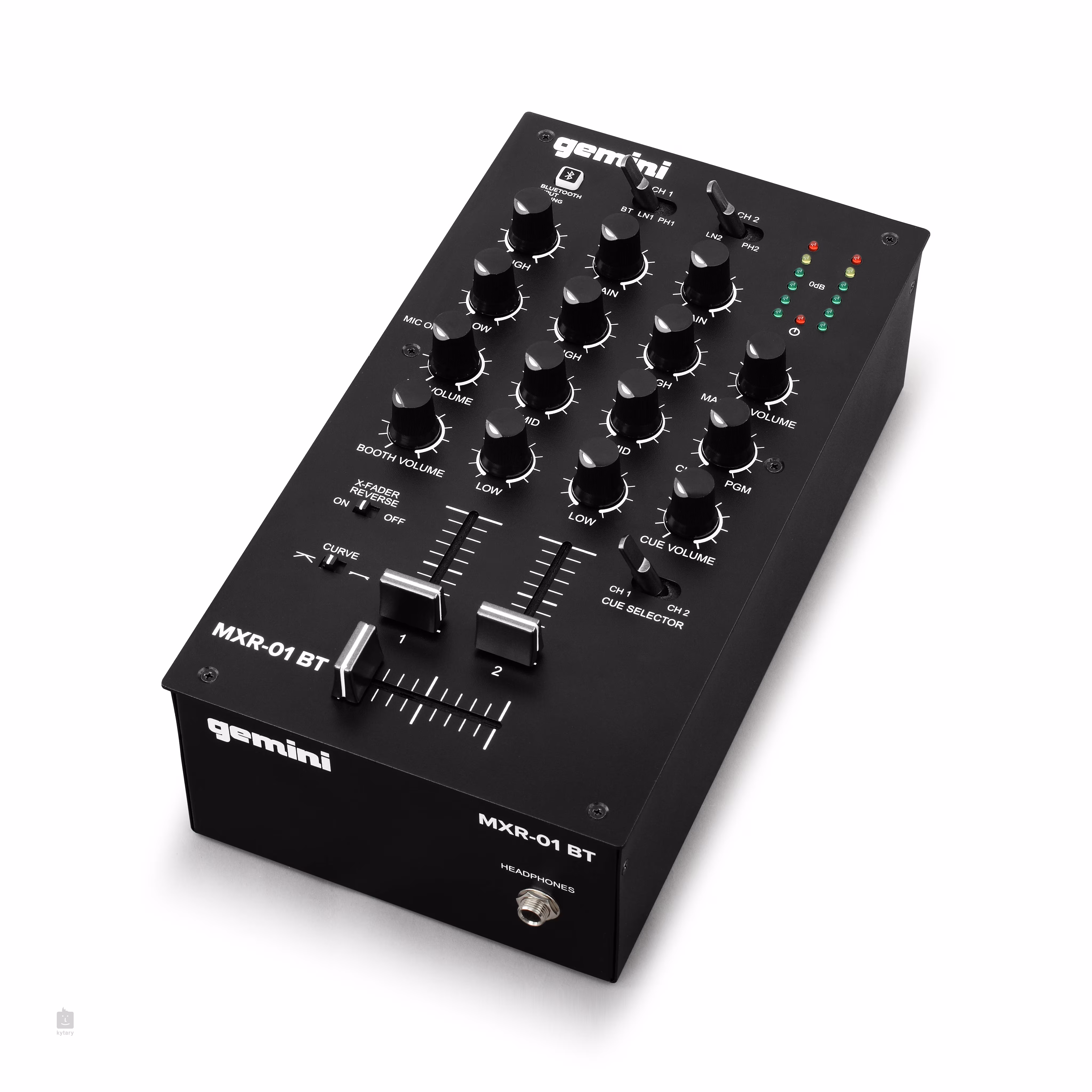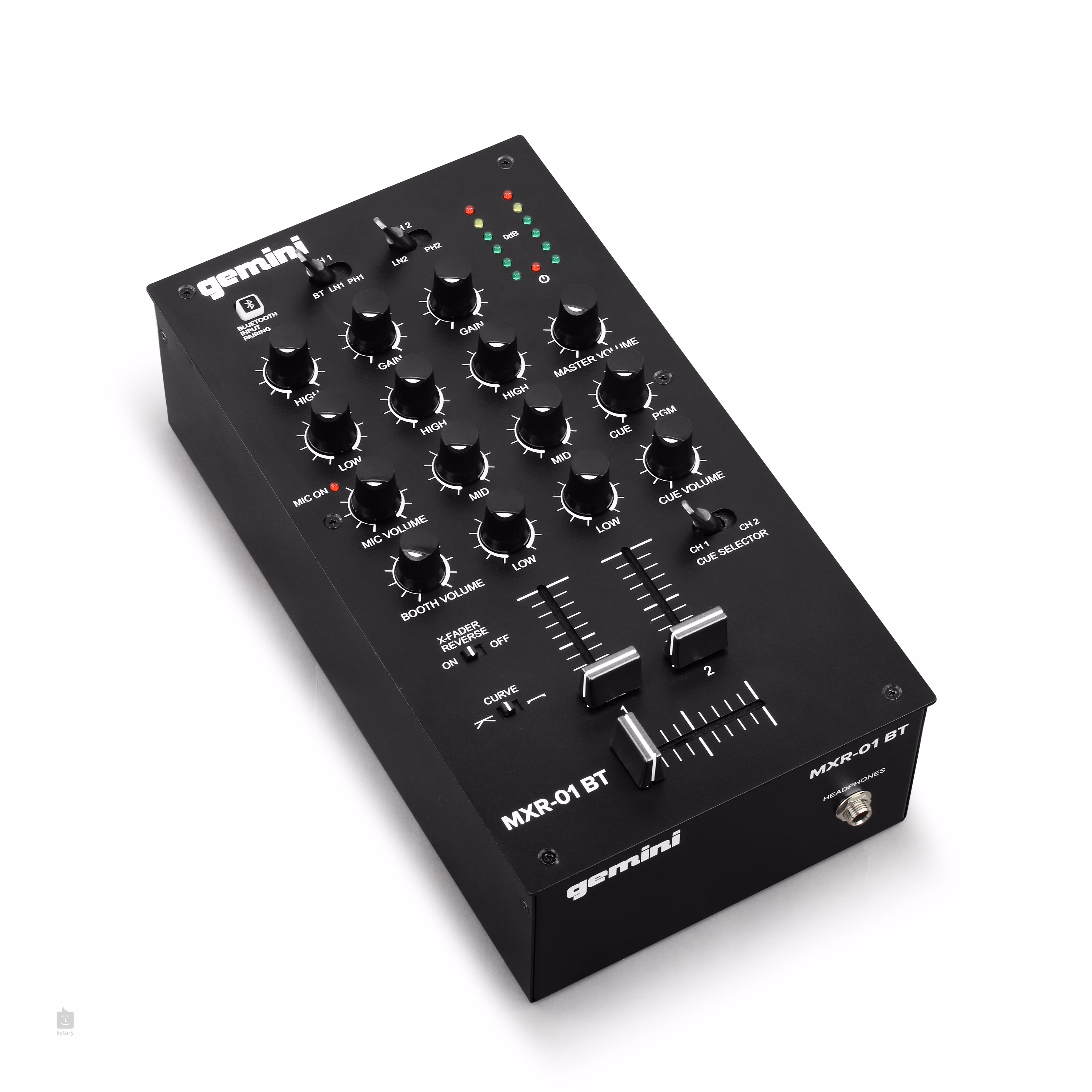 Gemini MXR-01BT to dwukanałowy profesjonalny mikser DJ-ski, który łączy wytrzymałą konstrukcję z nowoczesnymi funkcjami, w tym łącznością Bluetooth do bezprzewodowego przesyłania muzyki bezpośrednio z urządzenia mobilnego. Dzięki przejrzystemu i intuicyjnemu układowi sterowania jest idealny zarówno dla początkujących DJ-ów, jak i zaawansowanych użytkowników poszukujących niezawodnego miksera do codziennego użytku.