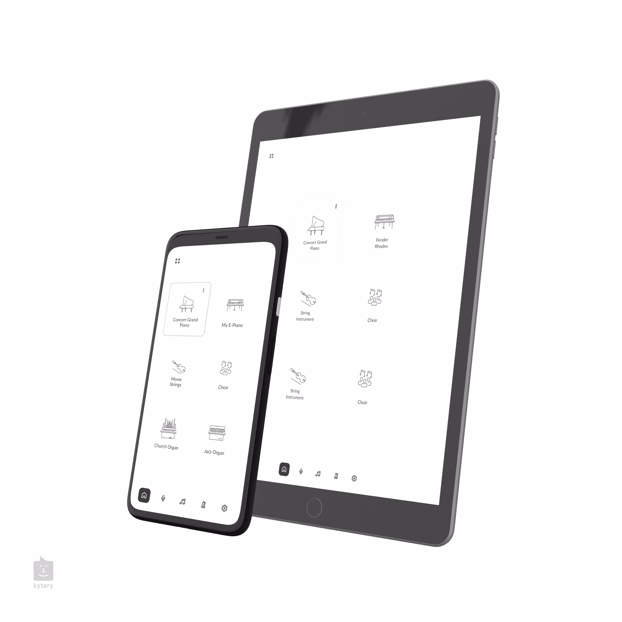 Minimalistyczny, nowoczesny panel sterowania z ośmioma podświetlanymi przyciskami zapewnia szybki dostęp do podstawowych funkcji, takich jak głośność, wybór dźwięku lub metronom. Zaawansowane ustawienia są dostępne za pośrednictwem aplikacji GEWA Piano Remote dla systemów Android i iOS, która umożliwia dostosowywanie dźwięków, efektów, parametrów klawiatury, nakładania dźwięków, metronomu, nagrywania i funkcji edukacyjnych. Piano obsługuje również funkcję Favorite do zapisywania czterech ulubionych presetów. Łączność obejmuje Bluetooth Audio i MIDI, USB to Host, wejście AUX, wyjście liniowe, dwa wejścia pedałowe oraz wyjście słuchawkowe, dzięki czemu instrument można łatwo zintegrować z domowym studiem lub aplikacjami edukacyjnymi, takimi jak Flowkey, Skoove czy Simply Piano.