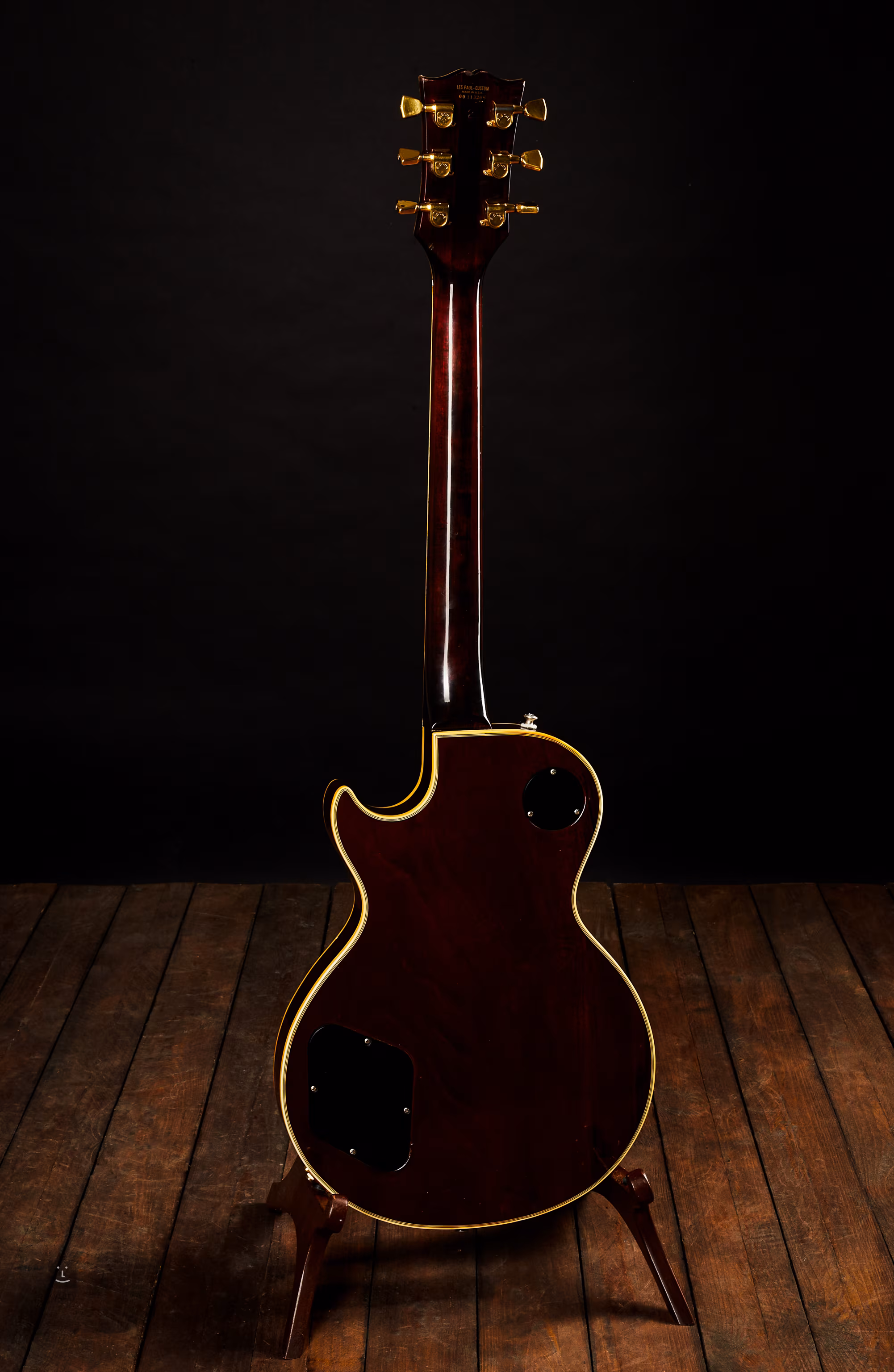 Oryginalny Les Paul z 1976 roku. Gitara vintage w wersji Custom, tradycyjnie ozdobiona bogatym bindingiem i wyposażona w osprzęt w złotym kolorze, klonowy gryf posiada hebanową podstrunnicę.