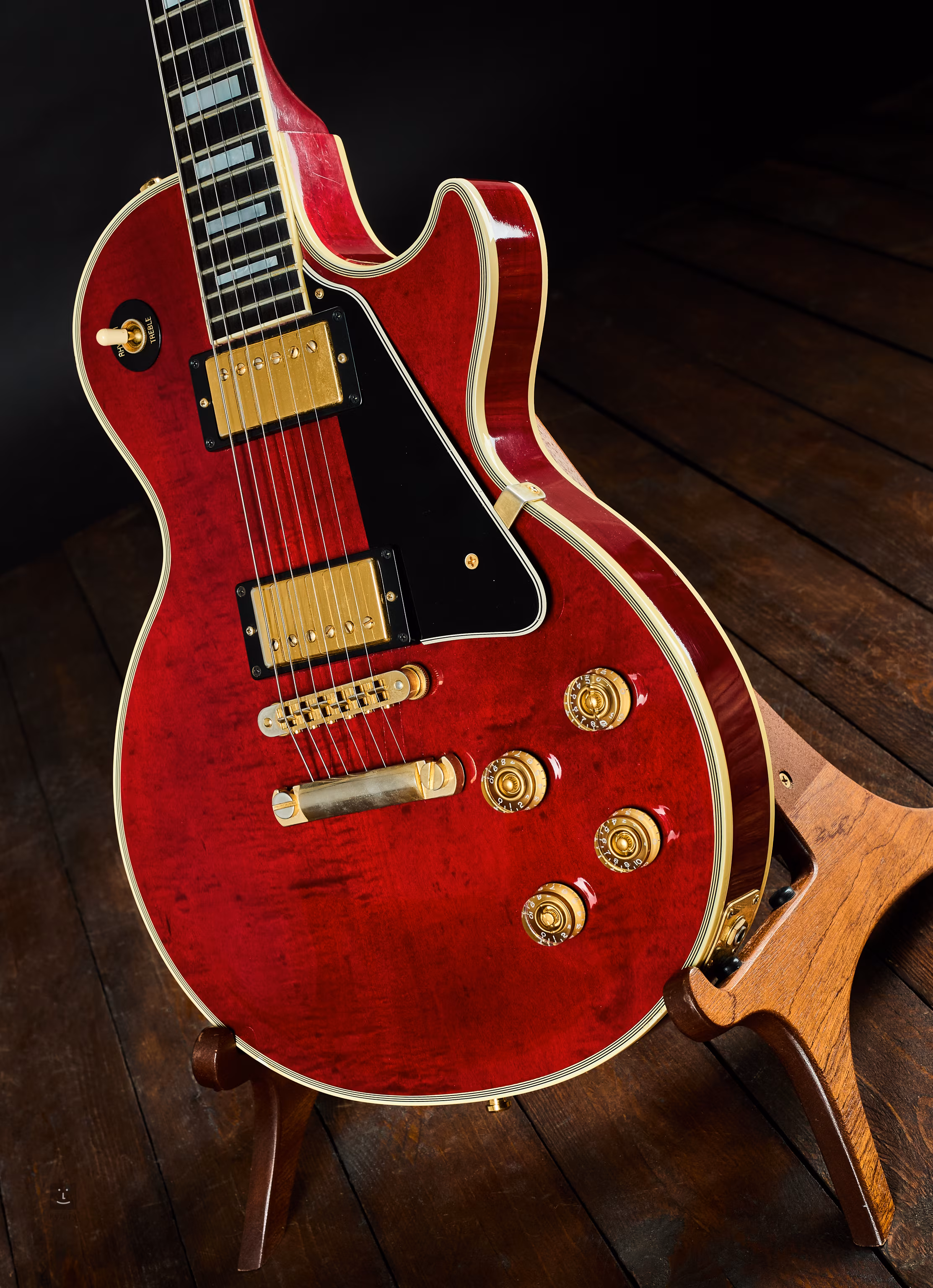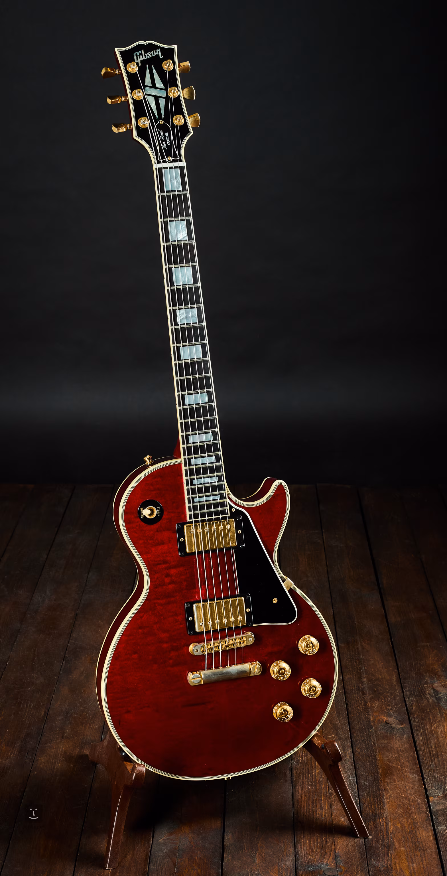 Jeśli szukasz instrumentu, który w rękach brzmi niemal sam, i podoba Ci się połączenie ciemnoczerwonego lakieru ze złotym osprzętem, być może to gitara „na całe życie” – o ile Ty jej dorównasz. Ten Gibson Les Paul Custom zbudowano tak, aby przebijał się w miksie i podkreślał nawet najdrobniejsze niuanse gry.